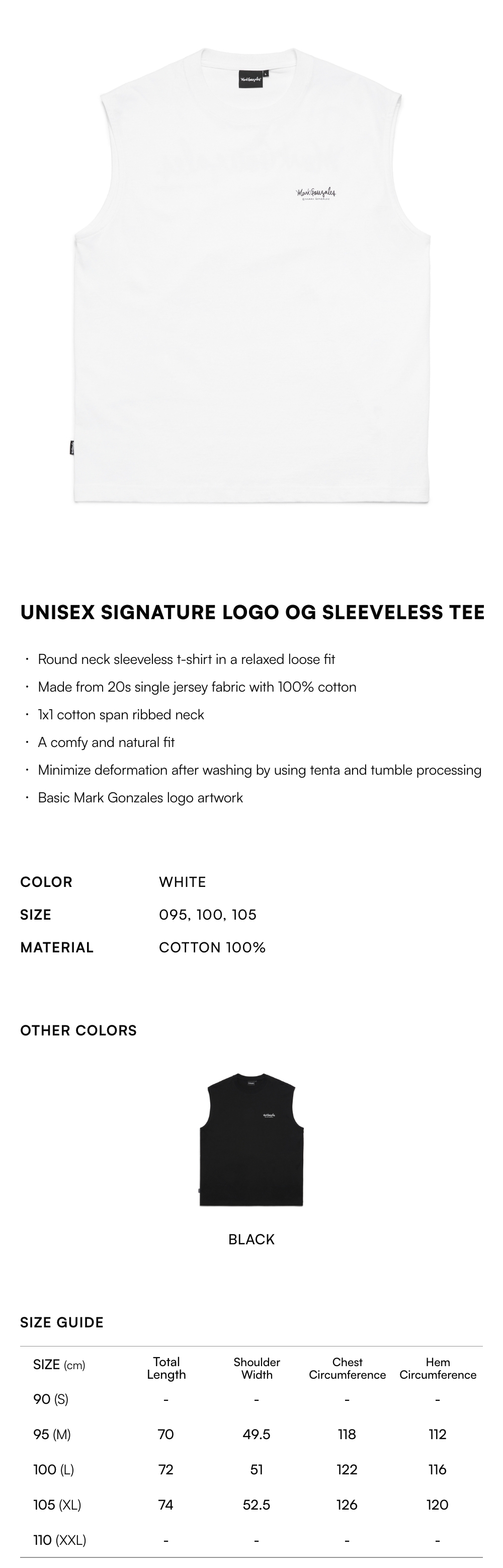 【10% OFF】Unisex Signature LOGO OG Sleeveless Tee - WHITE