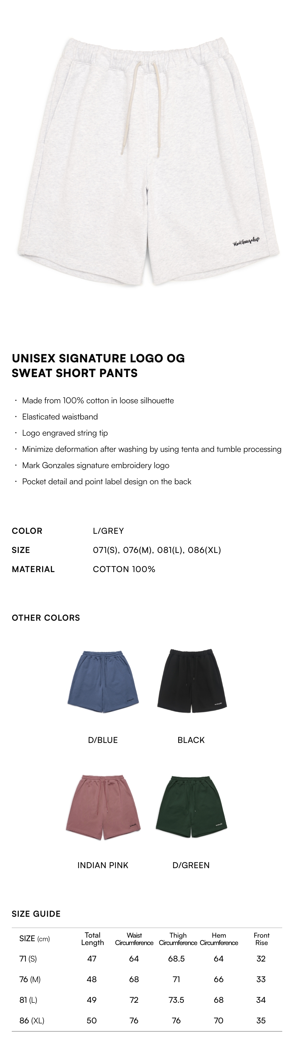 【20% OFF】Unisex Signature LOGO OG Sweat Short Pants - L/GREY