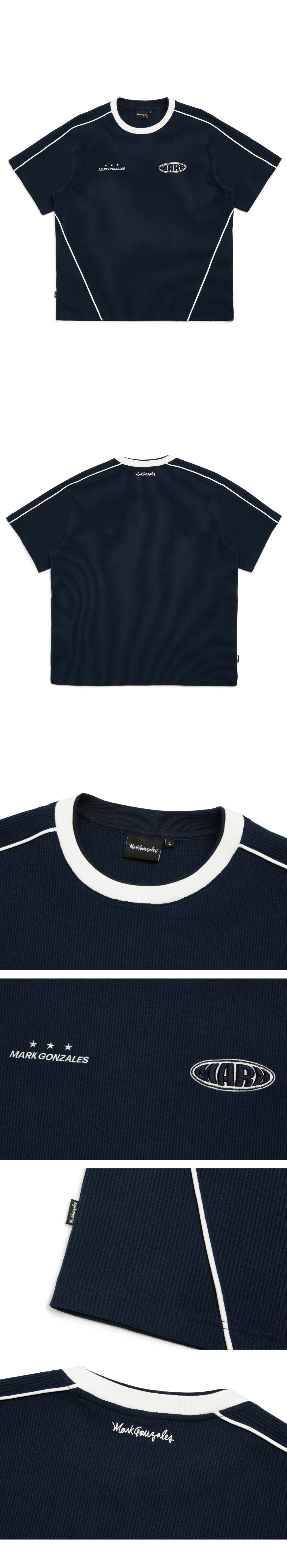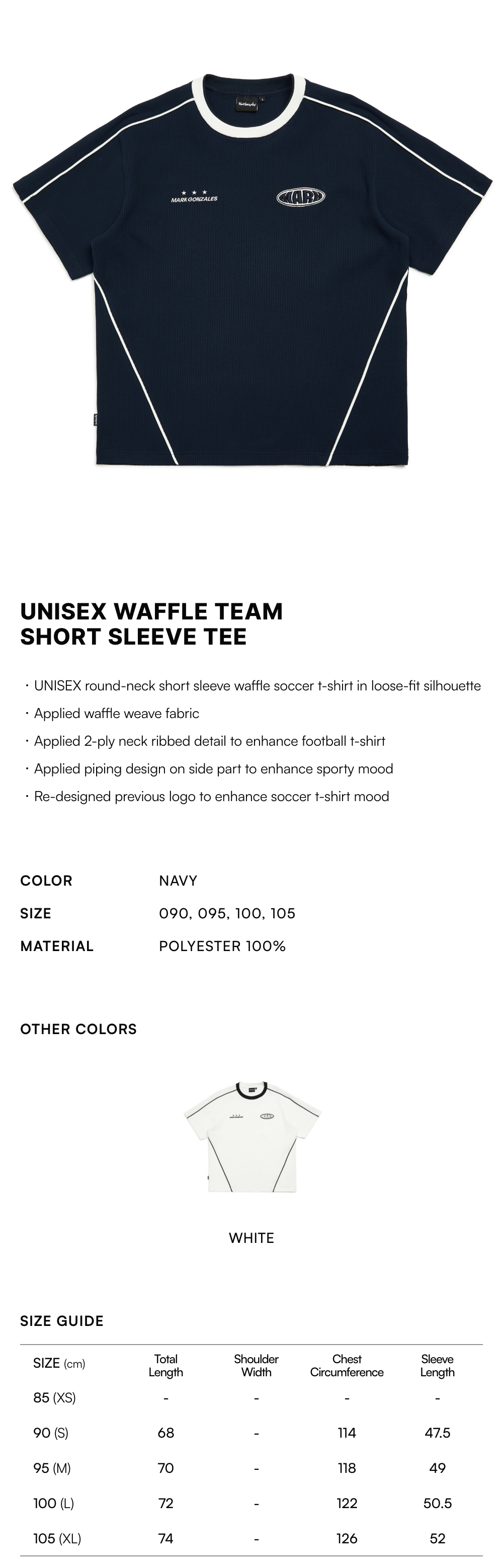 - UNISEX round-neck short sleeve waffle soccer t-shirt in loose-fit silhouette