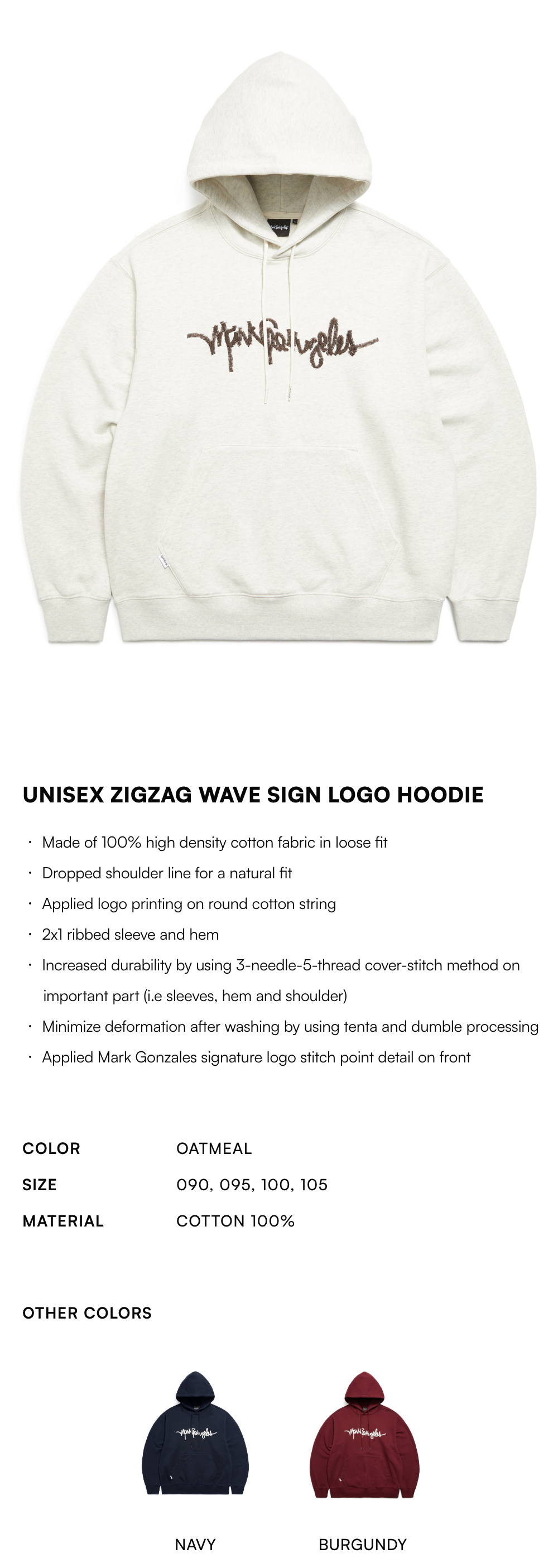 【20% OFF】Unisex Zigzag Wave Sign LOGO Hoodie - OATMEAL