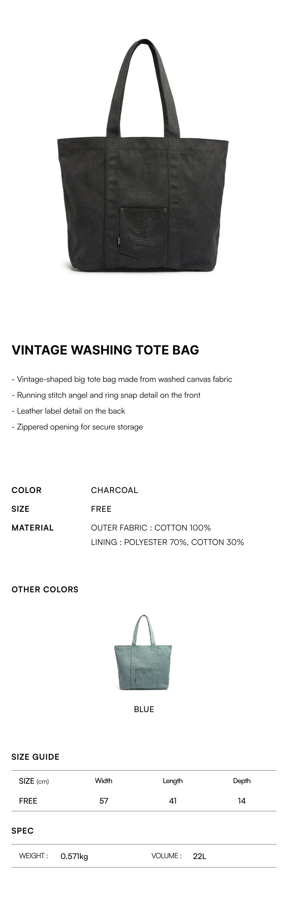 - Vintage-shaped big tote bag made from washed canvas fabric