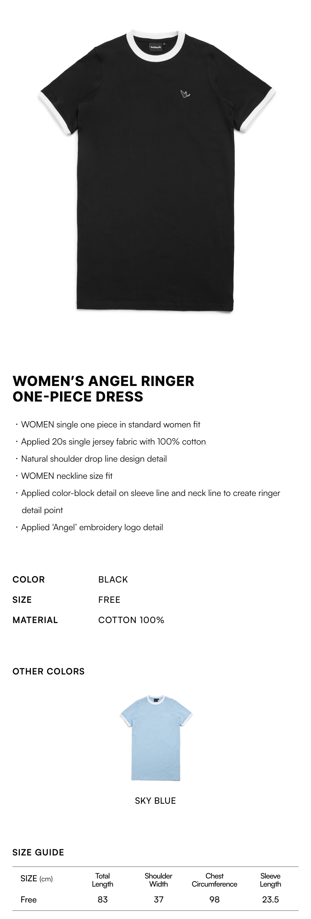【15% OFF】Women's Angel Ringer One-Piece Dress - BLACK