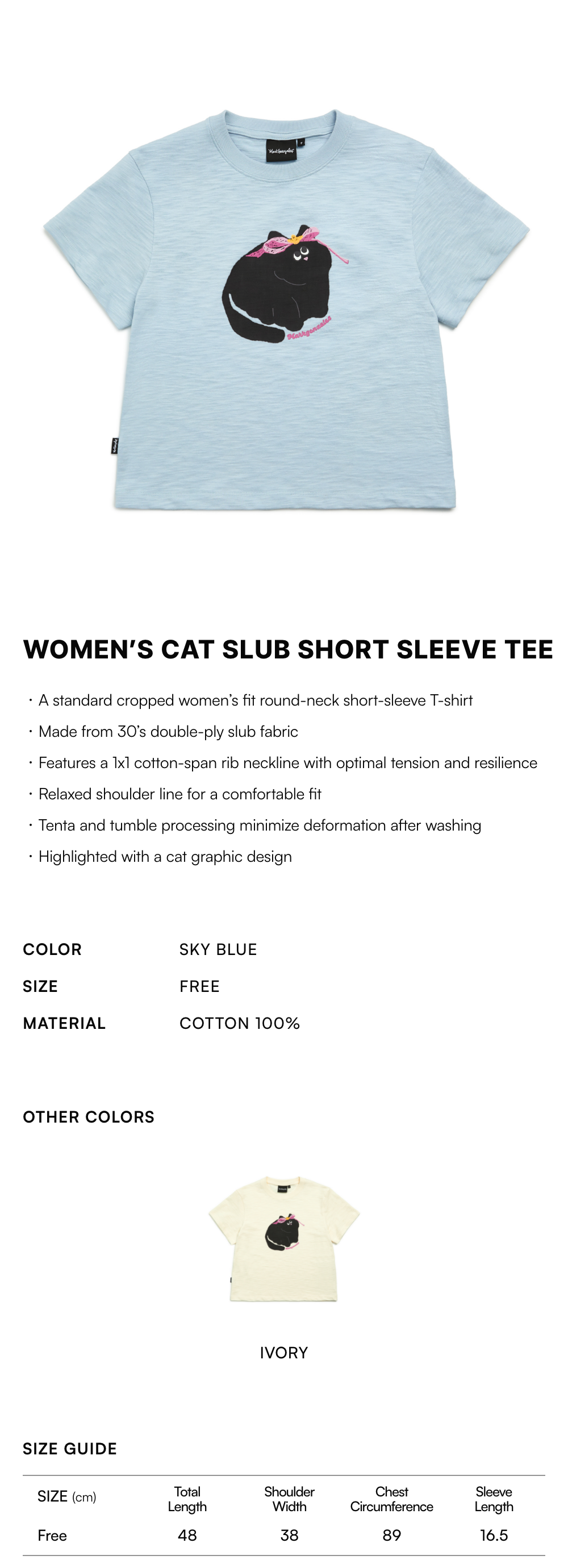 【10% OFF】Women's Cat Slub Short Sleeve Tee - S/BLUE