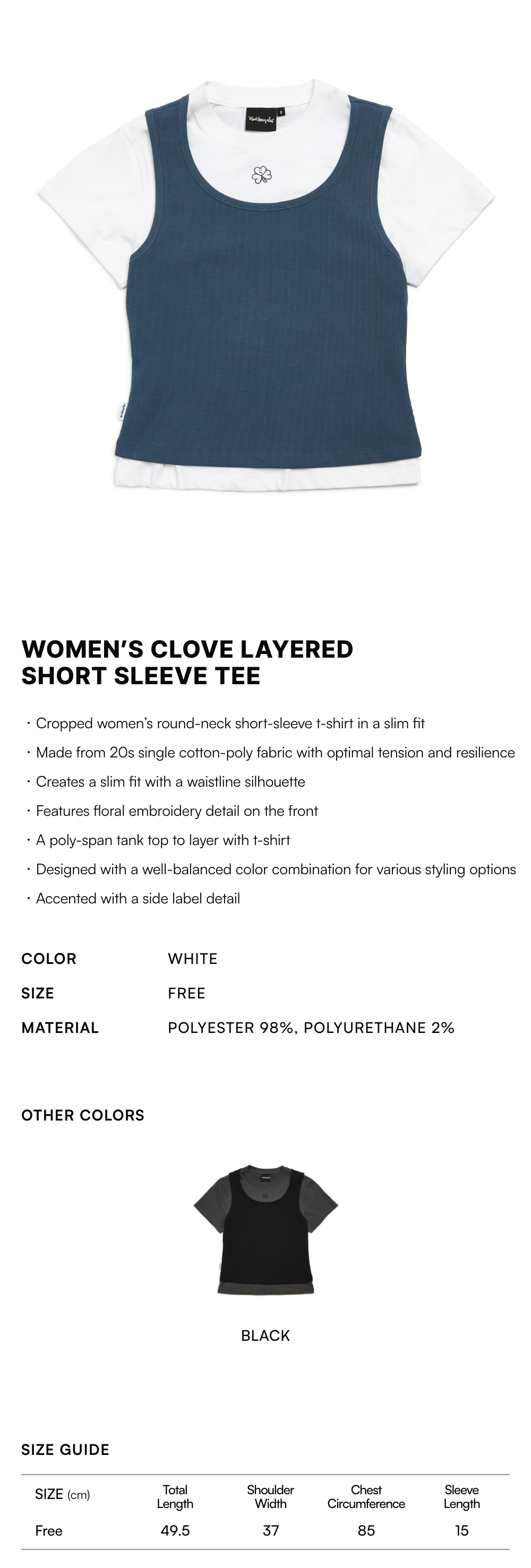 - Made from 20s single cotton-poly fabric with optimal tension and resilience