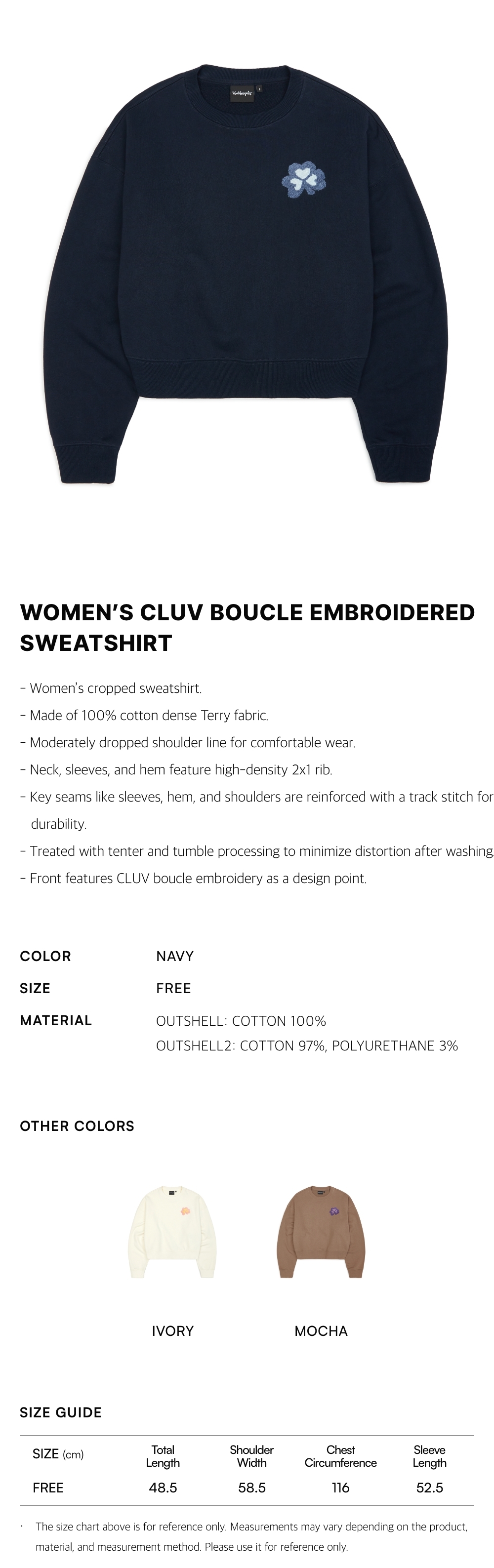 - Front features CLUV boucle embroidery as a design point.