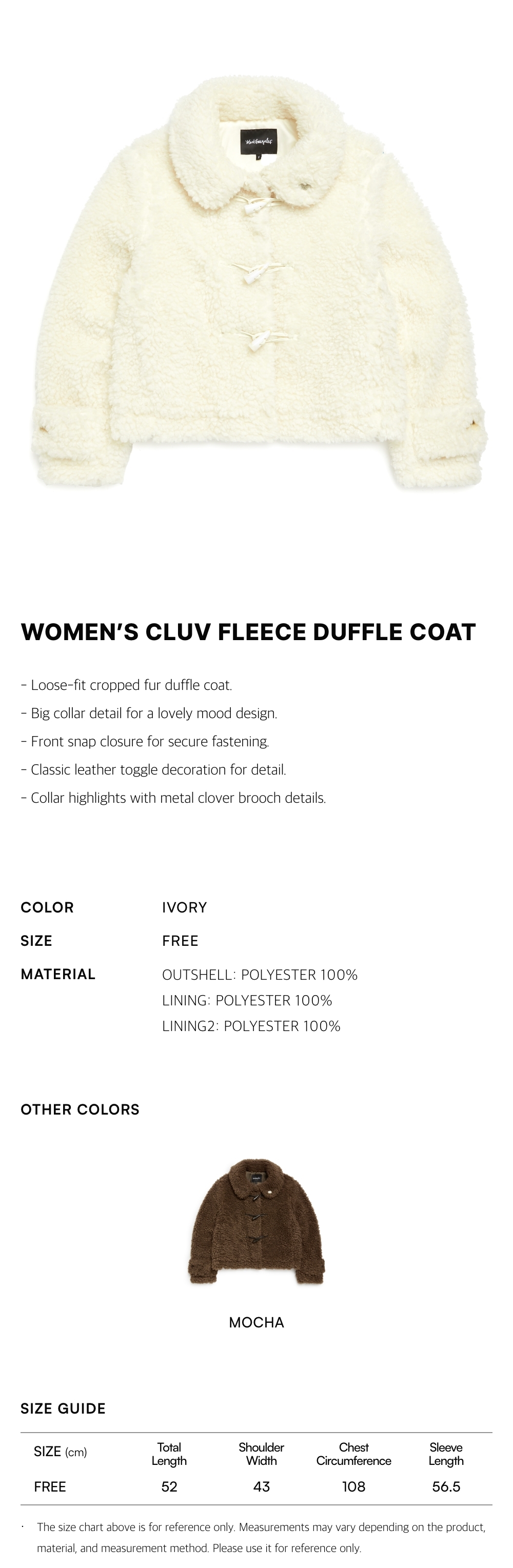 - Classic leather toggle decoration for detail.