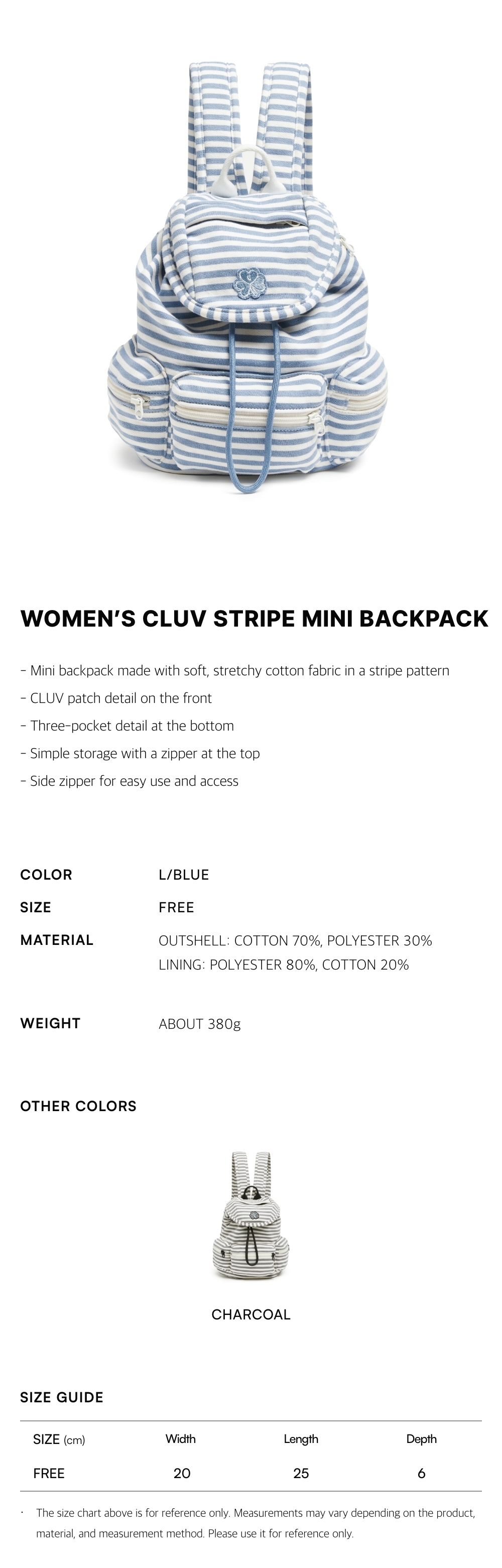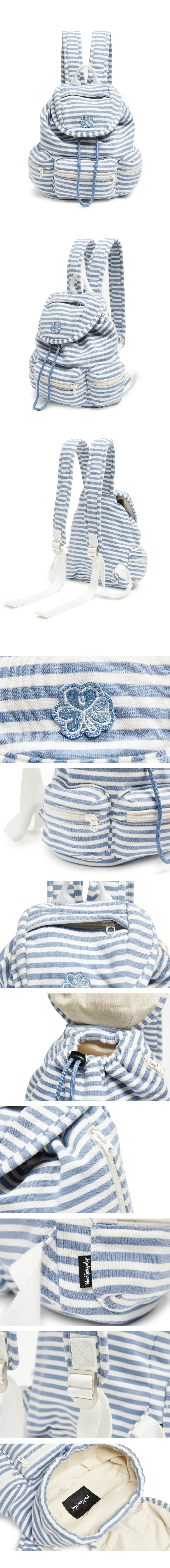 - Mini backpack made with soft, stretchy cotton fabric in a stripe pattern