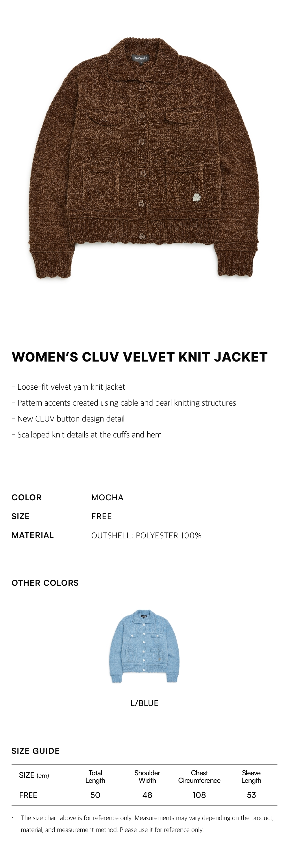 - Loose-fit velvet yarn knit jacket
