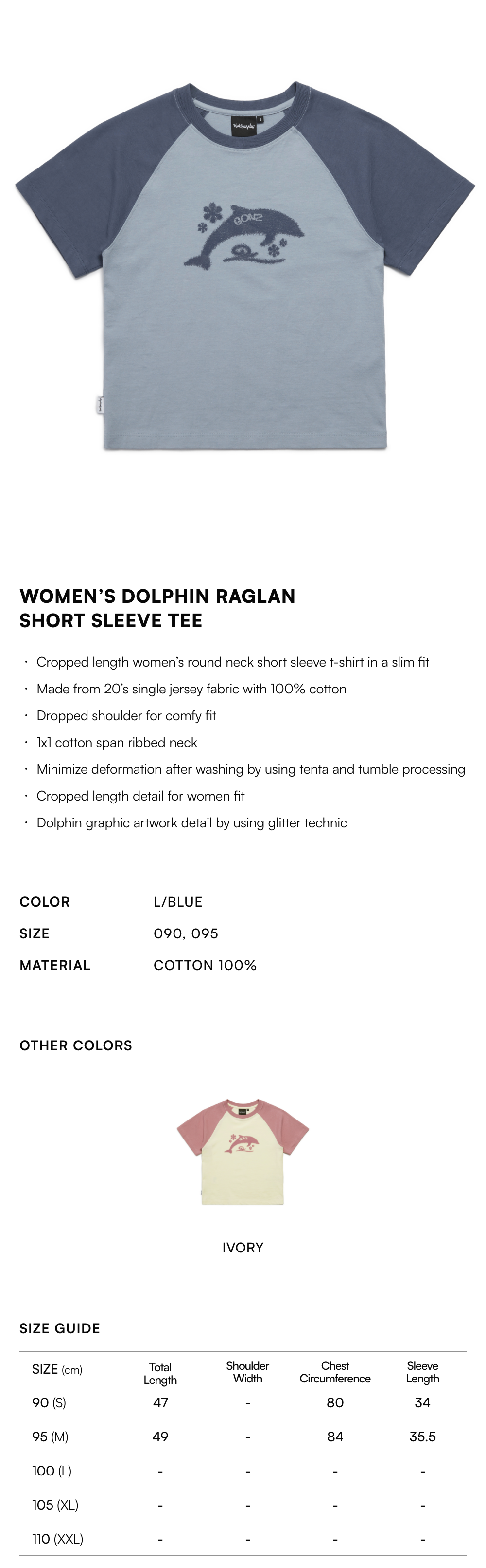 【20% OFF】Women's Dolphin Raglan Short Sleeve Tee - L/BLUE
