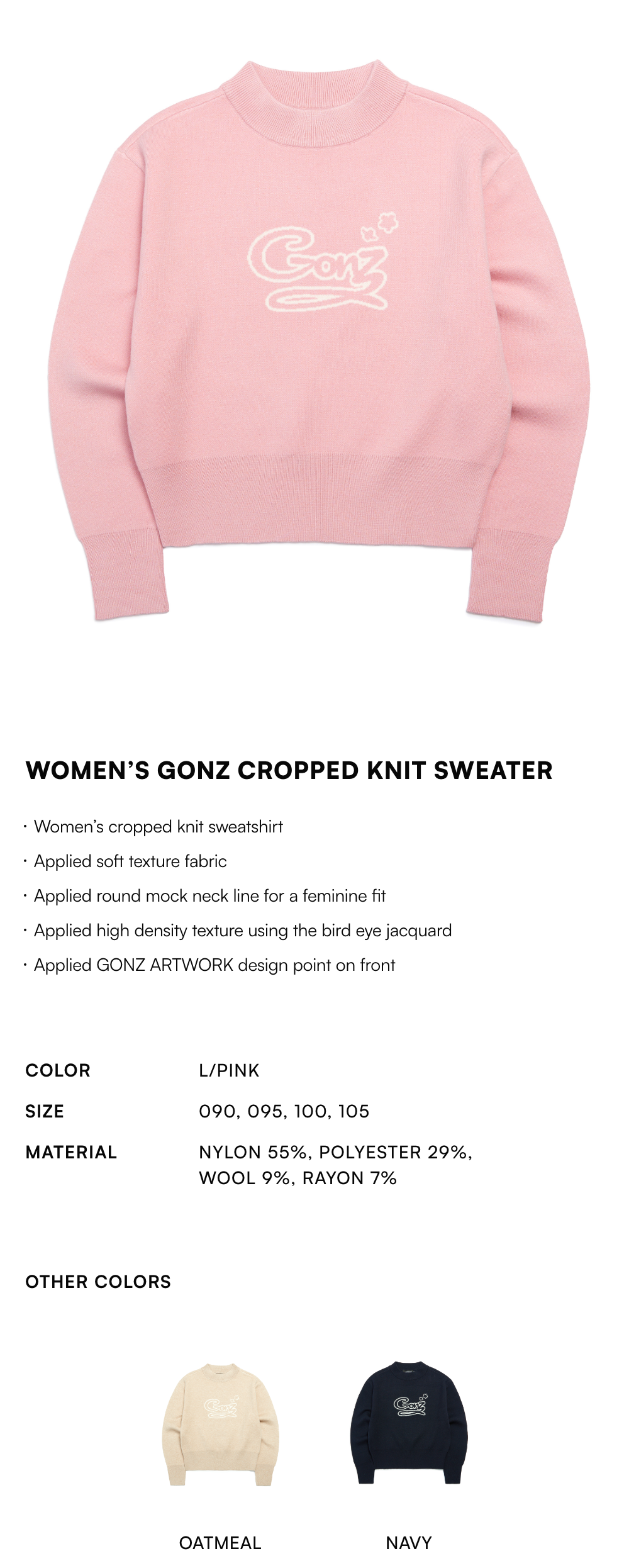 【20% OFF】Women's GONZ Cropped Knit Sweater - L/PINK