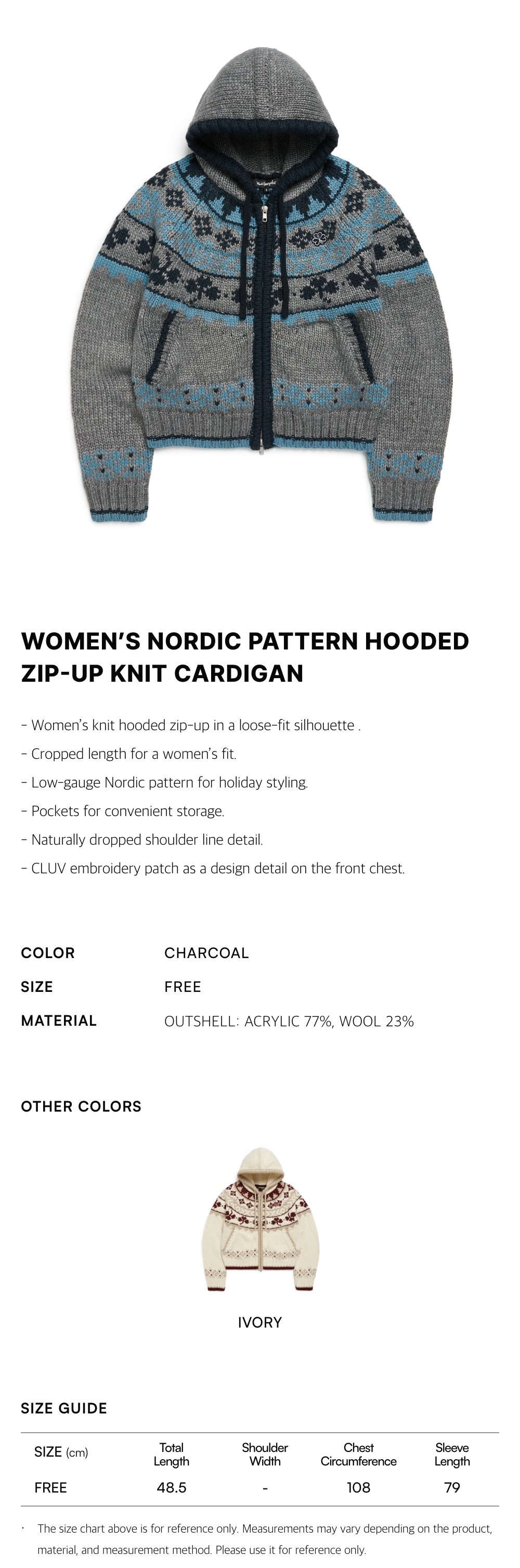 - CLUV embroidery patch as a design detail on the front chest.