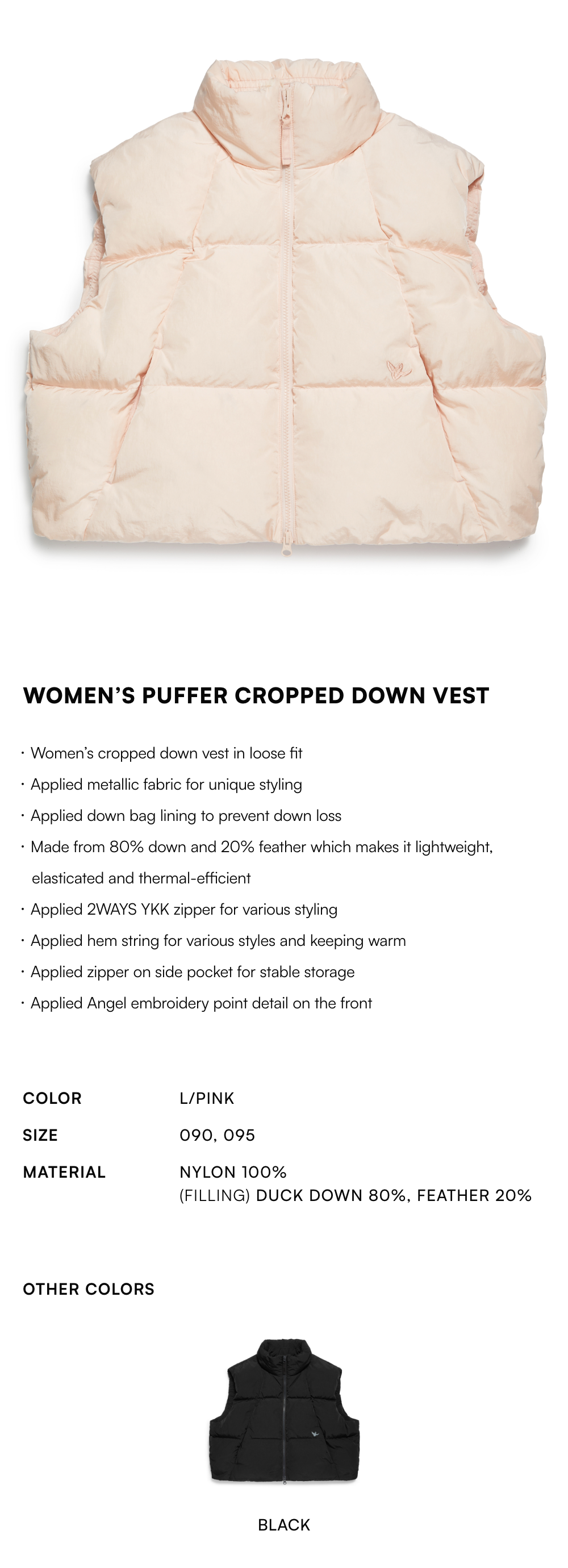 【20% OFF】Women's Puffer Cropped Down Vest - L/PINK