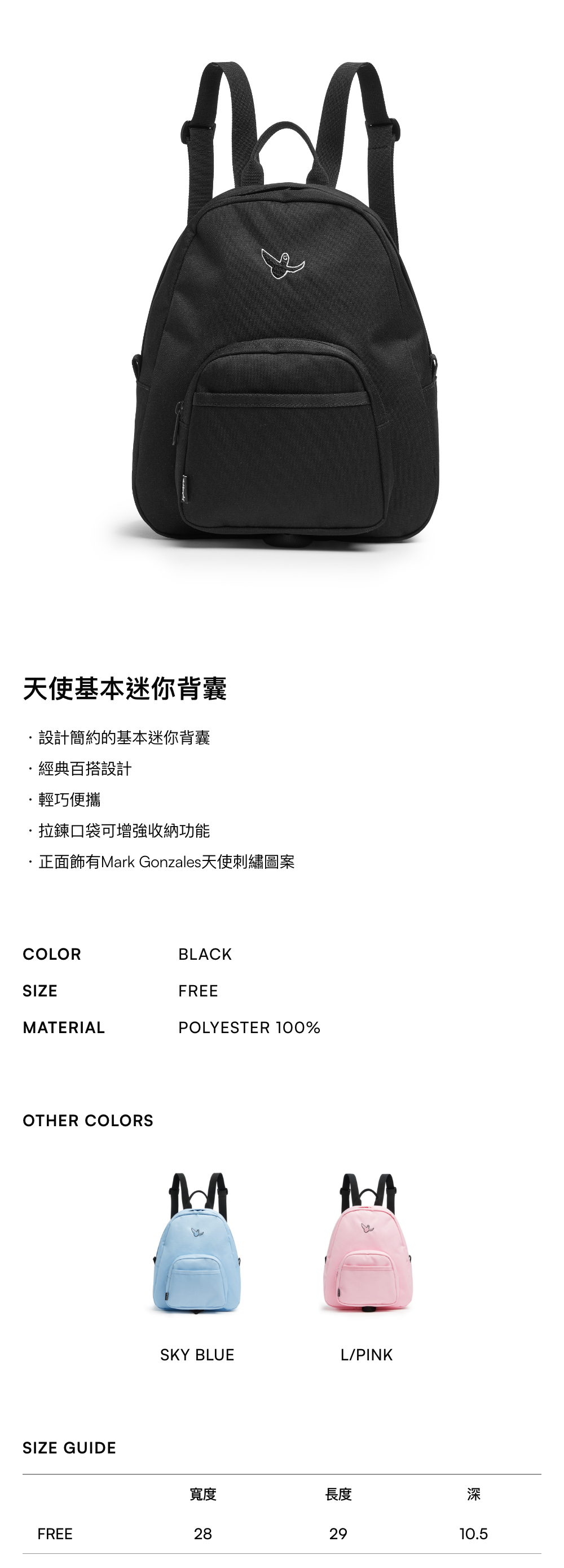 - 設計簡約的基本迷你背囊