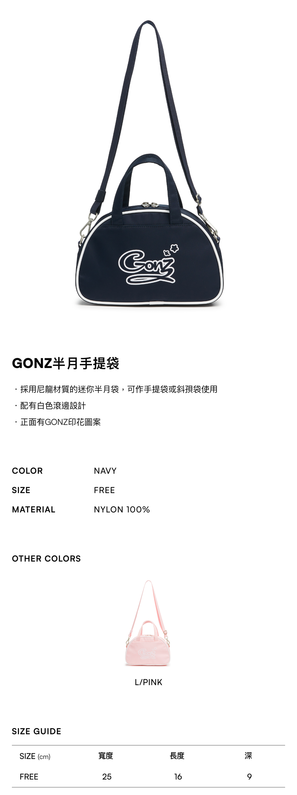 - 採用尼龍材質的迷你半月袋,可作手提袋或斜孭袋使用