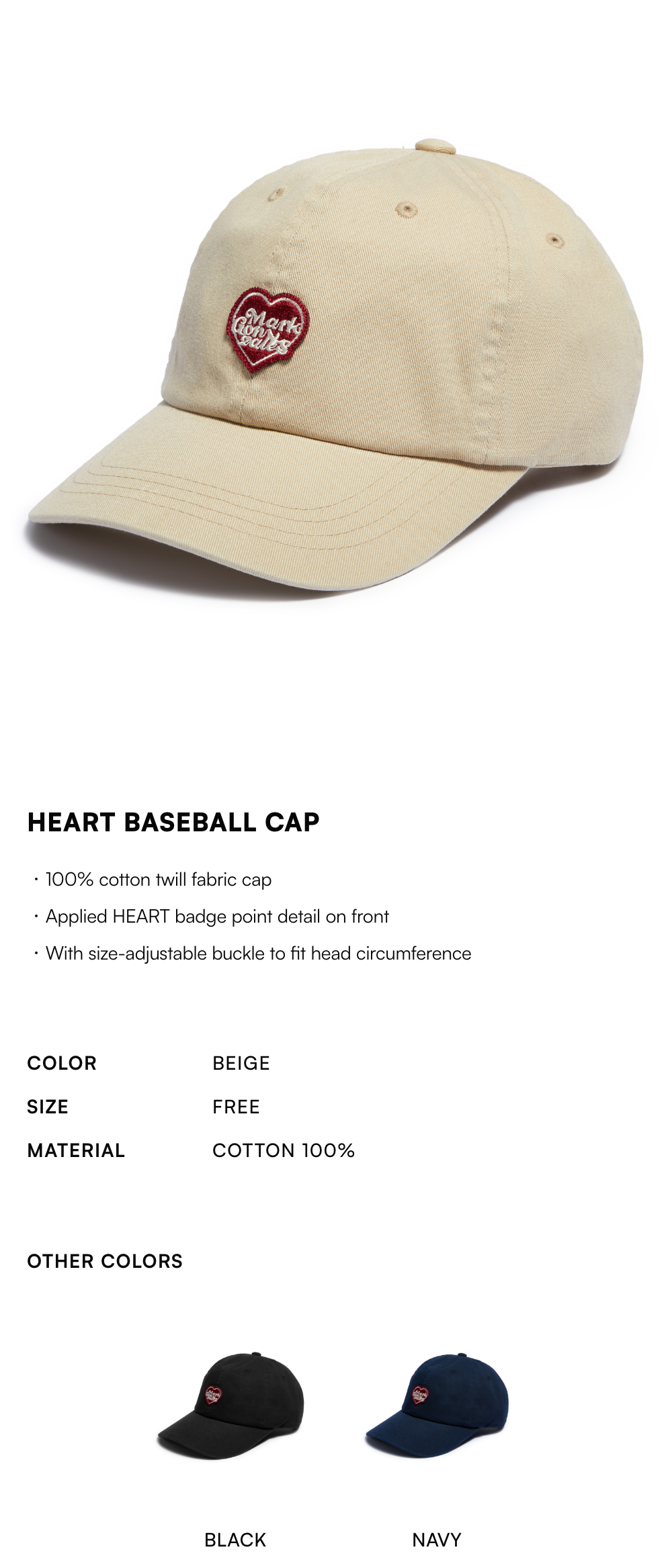 Heart Baseball Cap - BEIGE