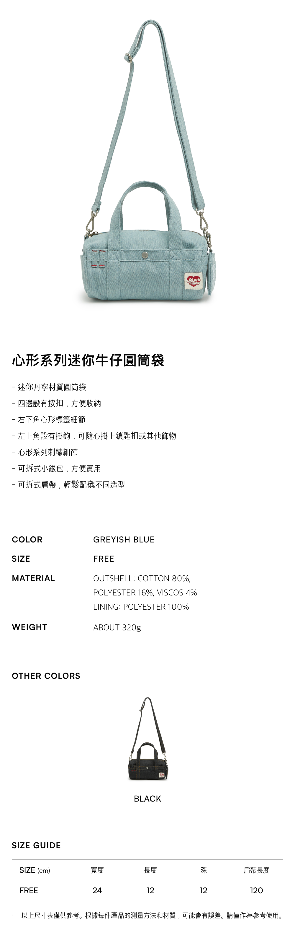 - 迷你丹寧材質圓筒袋