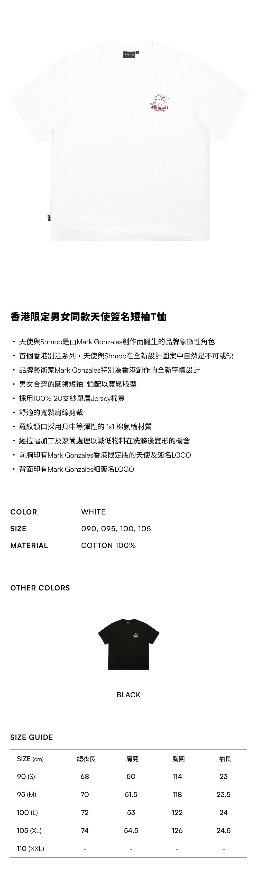 - 前胸印有Mark Gonzales香港限定版的天使及簽名LOGO