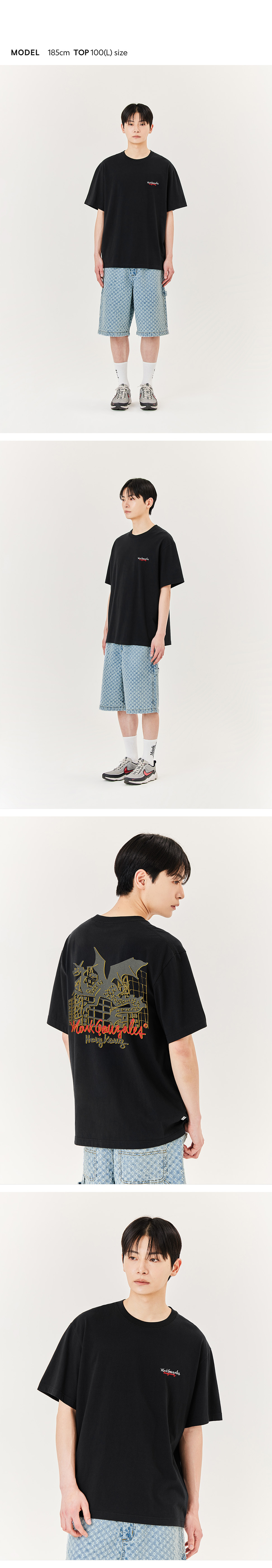 - 男女合穿的圓領短袖T恤配以寬鬆版型