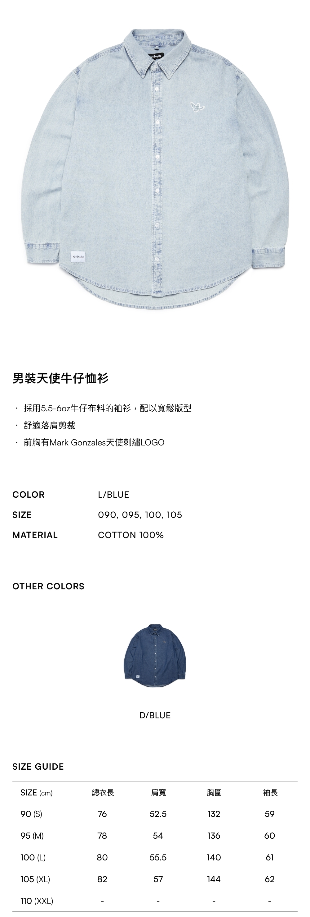 - 採用5.5-6oz牛仔布料的裇衫,配以寬鬆版型