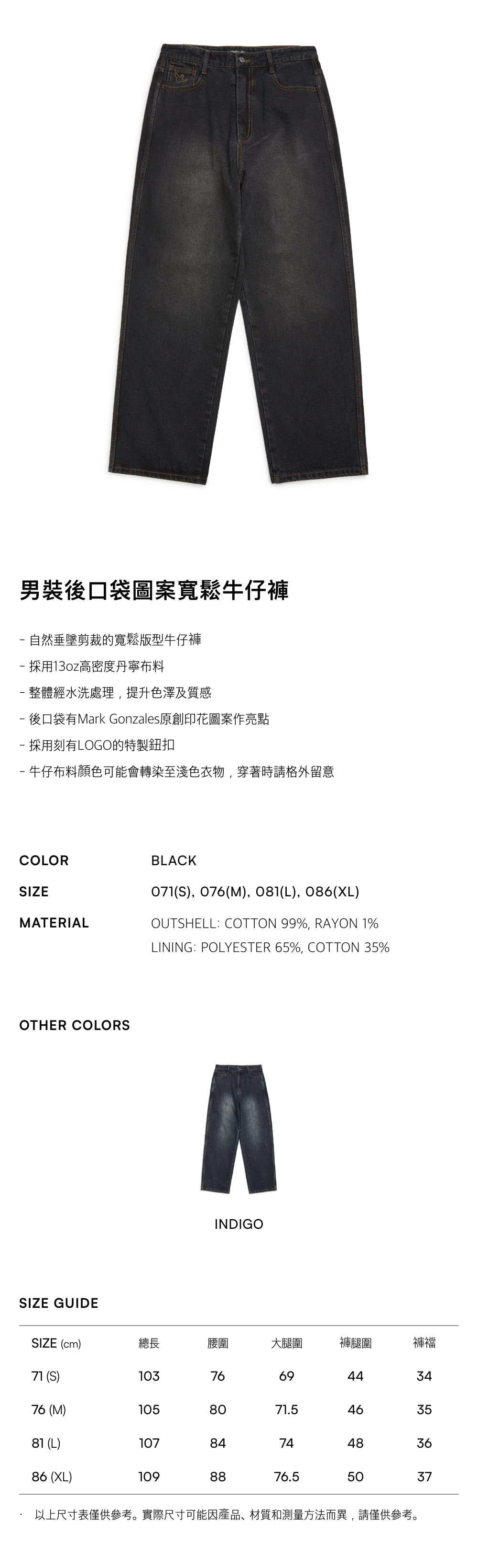 - 後口袋有Mark Gonzales原創印花圖案作亮點