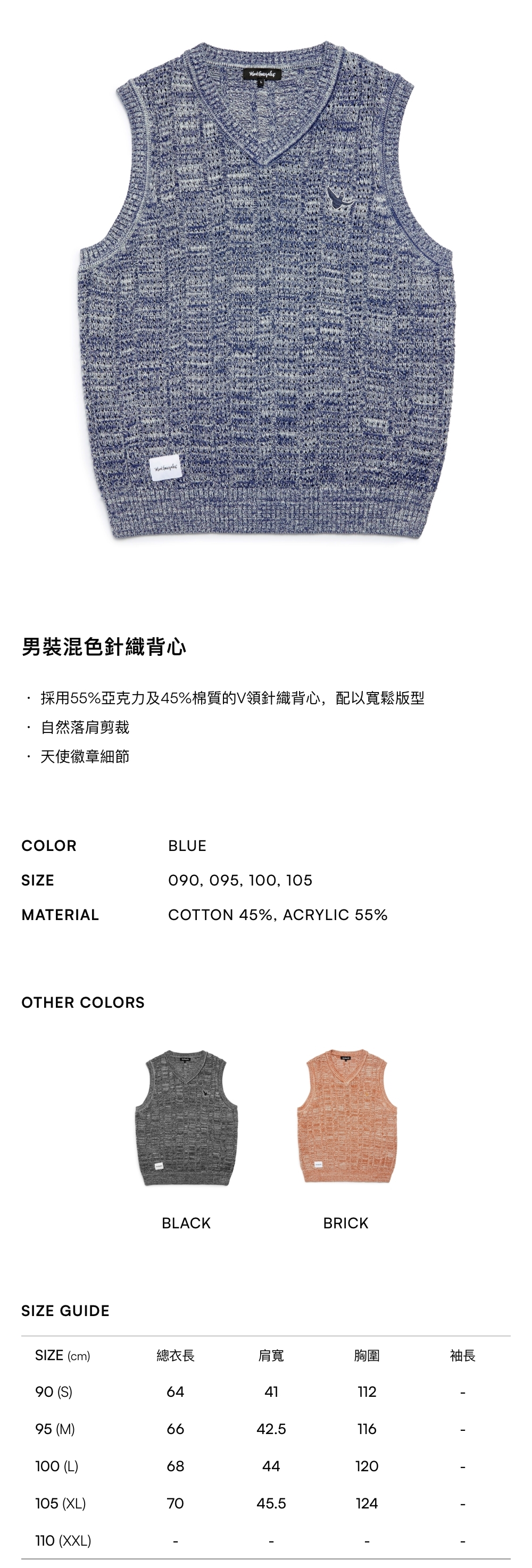 - 採用55%亞克力及45%棉質的V領針織背心,配以寬鬆版型