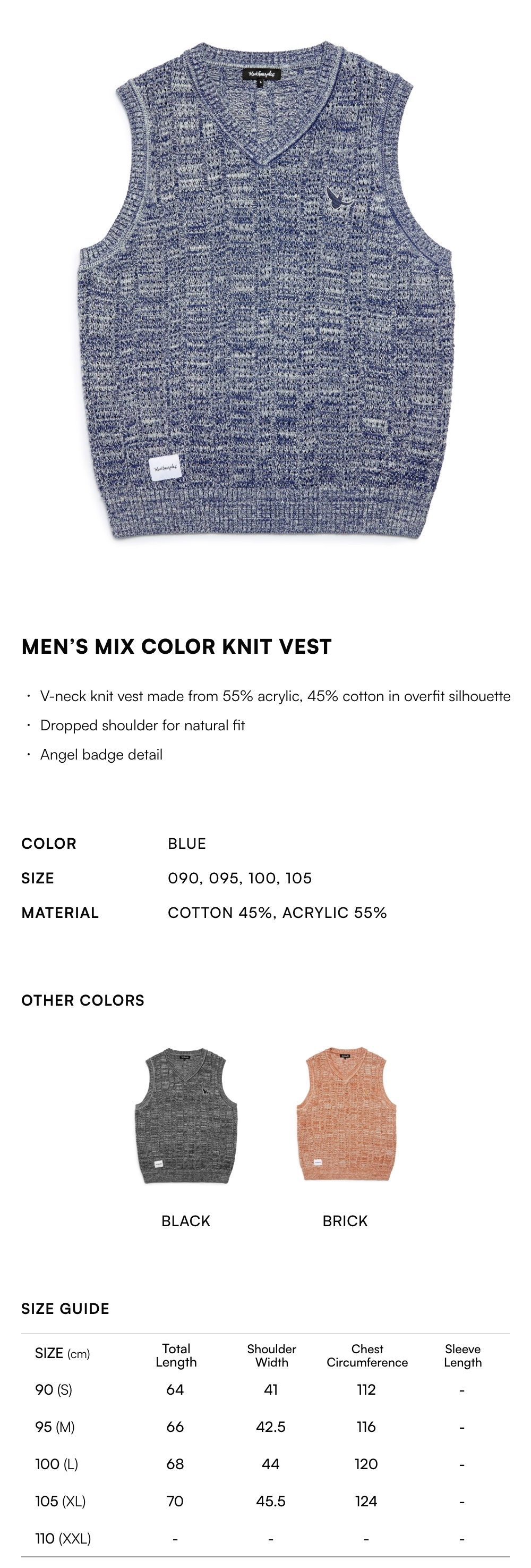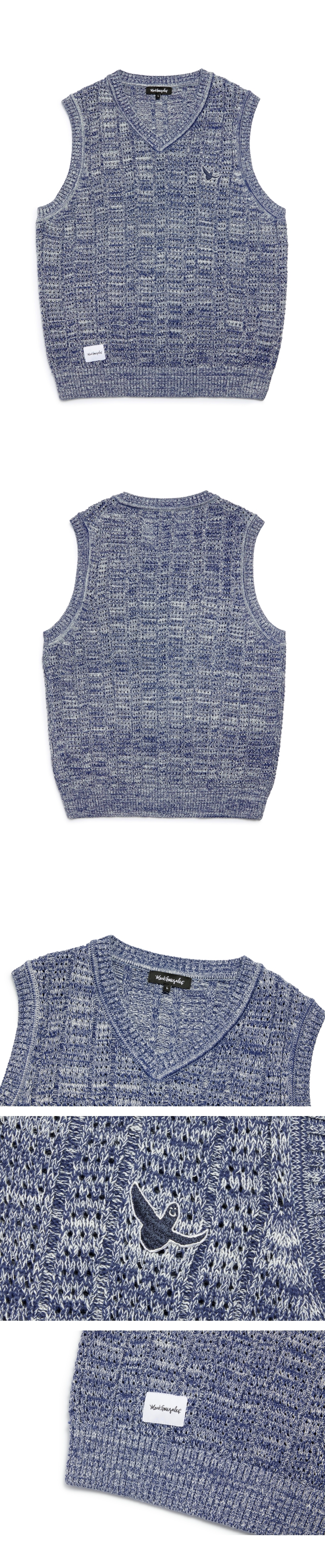 - V-neck knit vest made from 55% acrylic, 45% cotton in overfit silhouette