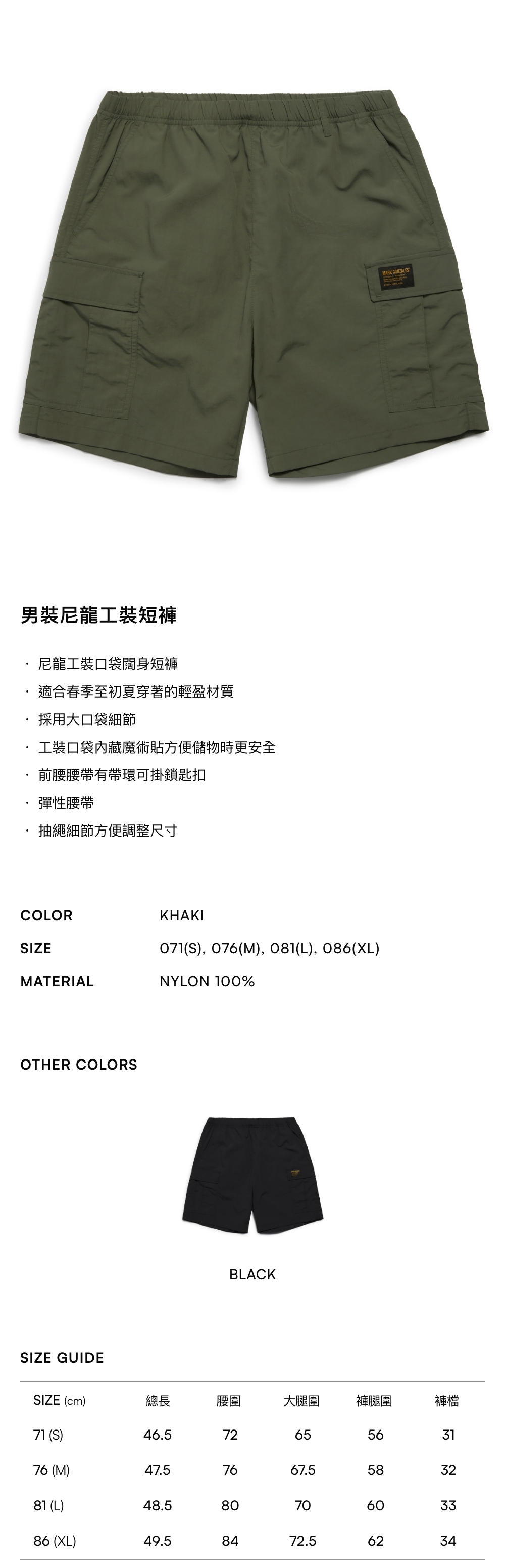 【限時85折】男裝尼龍工裝短褲