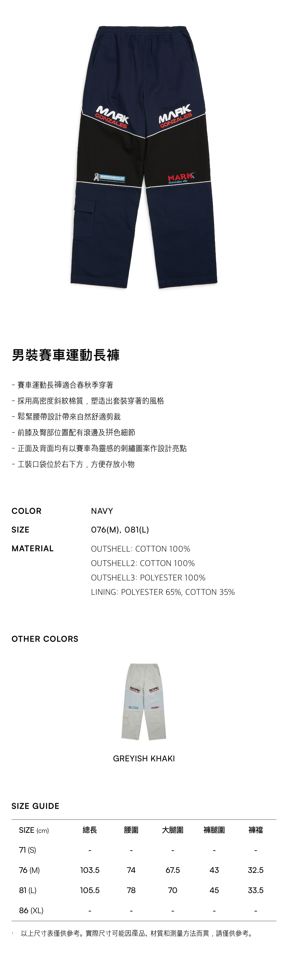 - 正面及背面均有以賽車為靈感的刺繡圖案作設計亮點