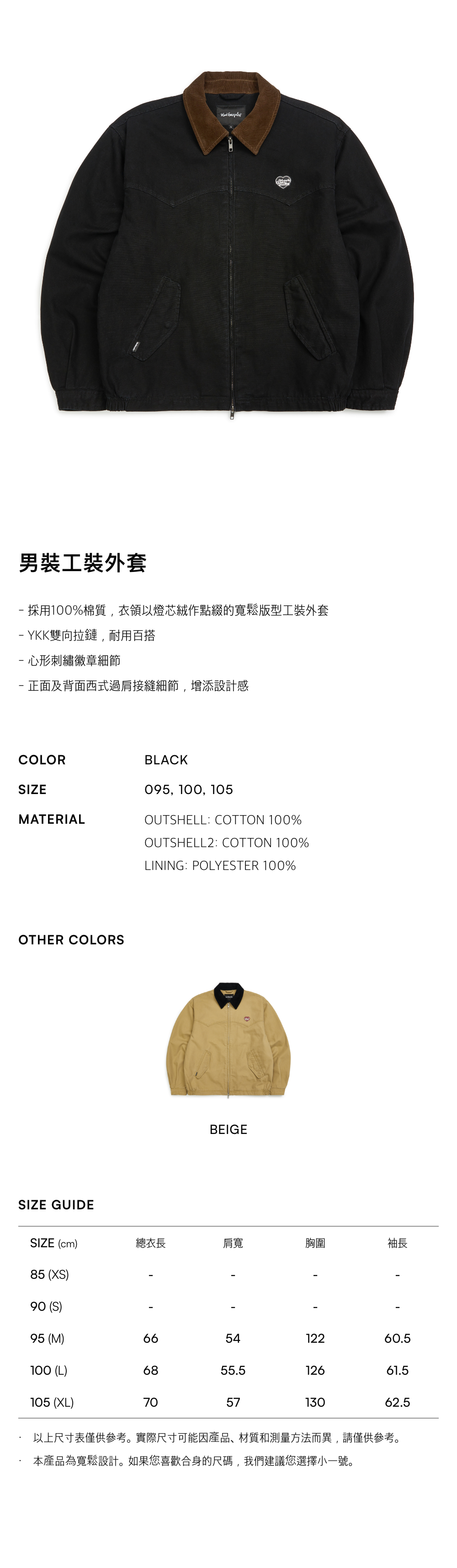 - 採用100%棉質,衣領以燈芯絨作點綴的寬鬆版型工裝外套