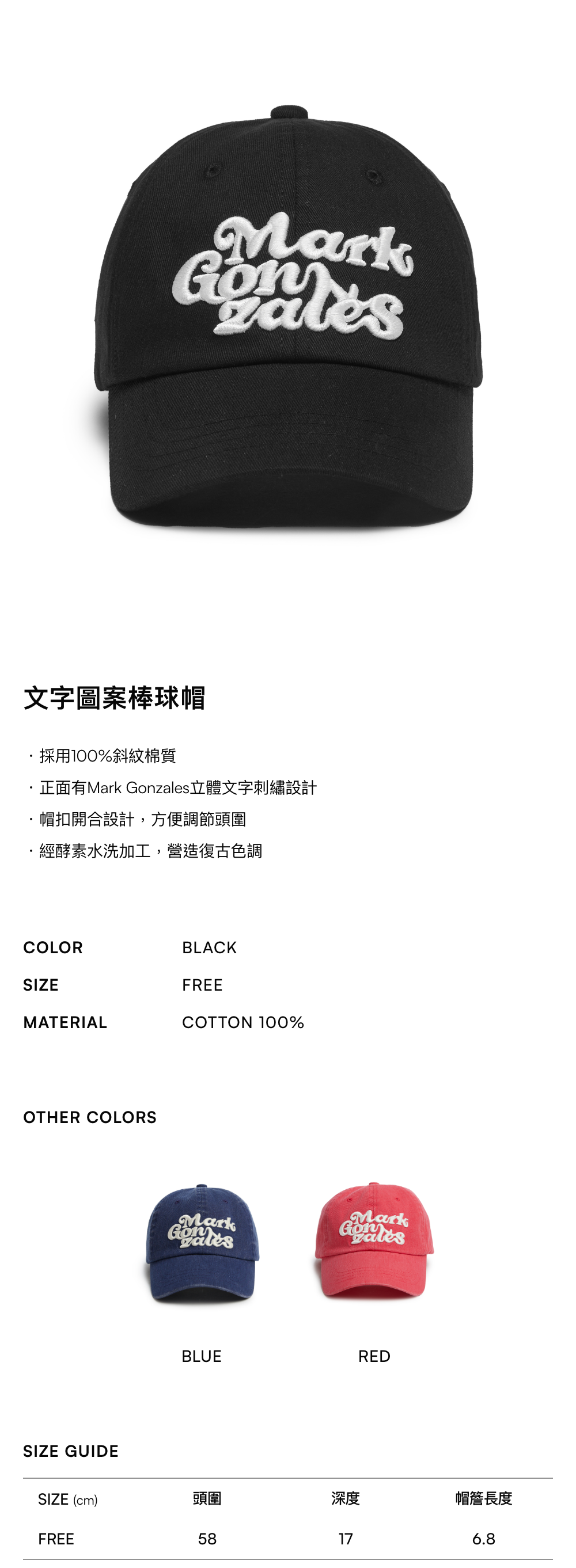 - 正面有Mark Gonzales立體文字刺繡設計