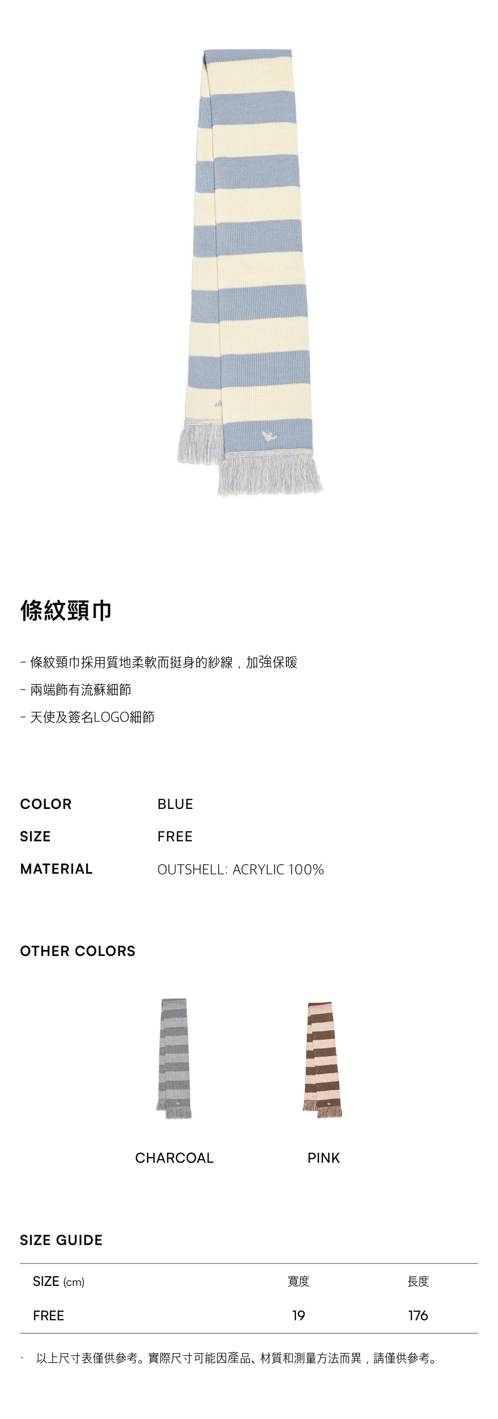 - 條紋頸巾採用質地柔軟而挺身的紗線,加強保暖