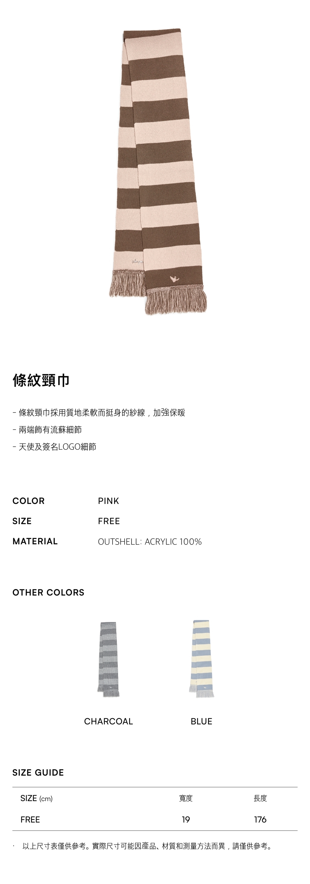 - 條紋頸巾採用質地柔軟而挺身的紗線,加強保暖