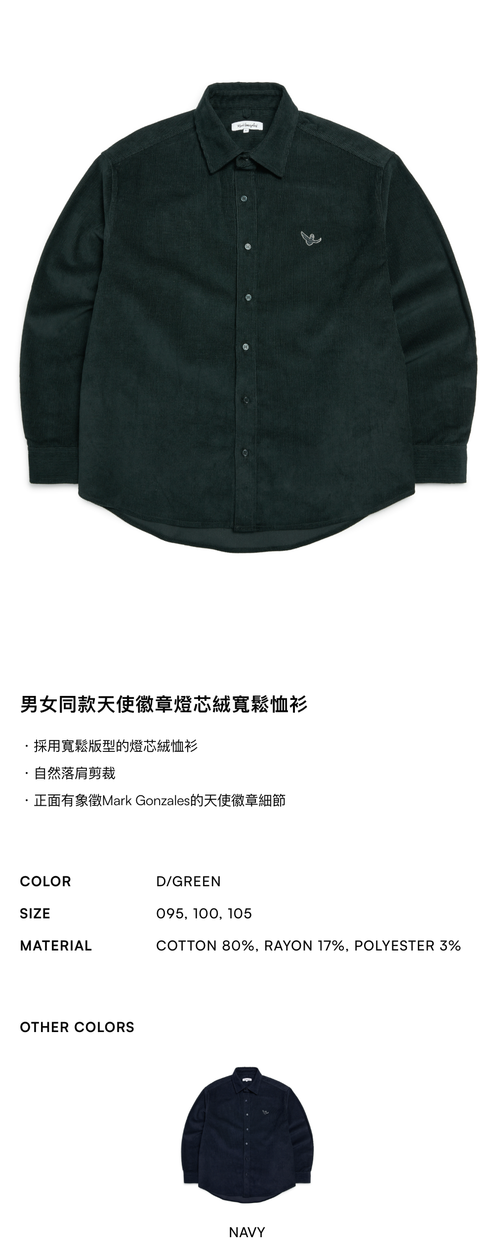 - 採用寬鬆版型的燈芯絨恤衫