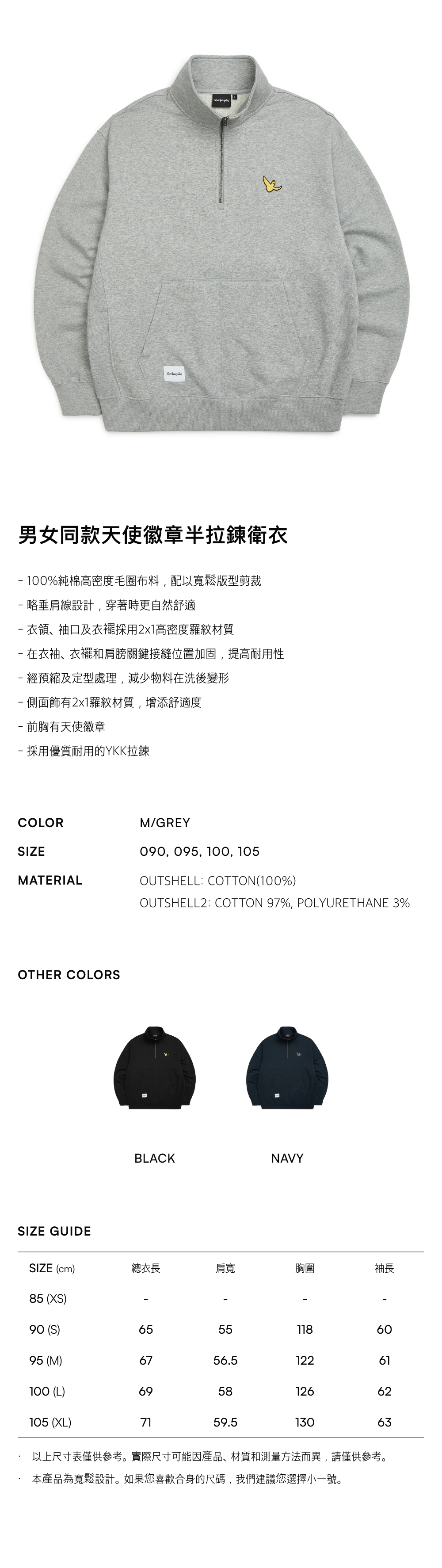 - 100%純棉高密度毛圈布料,配以寬鬆版型剪裁