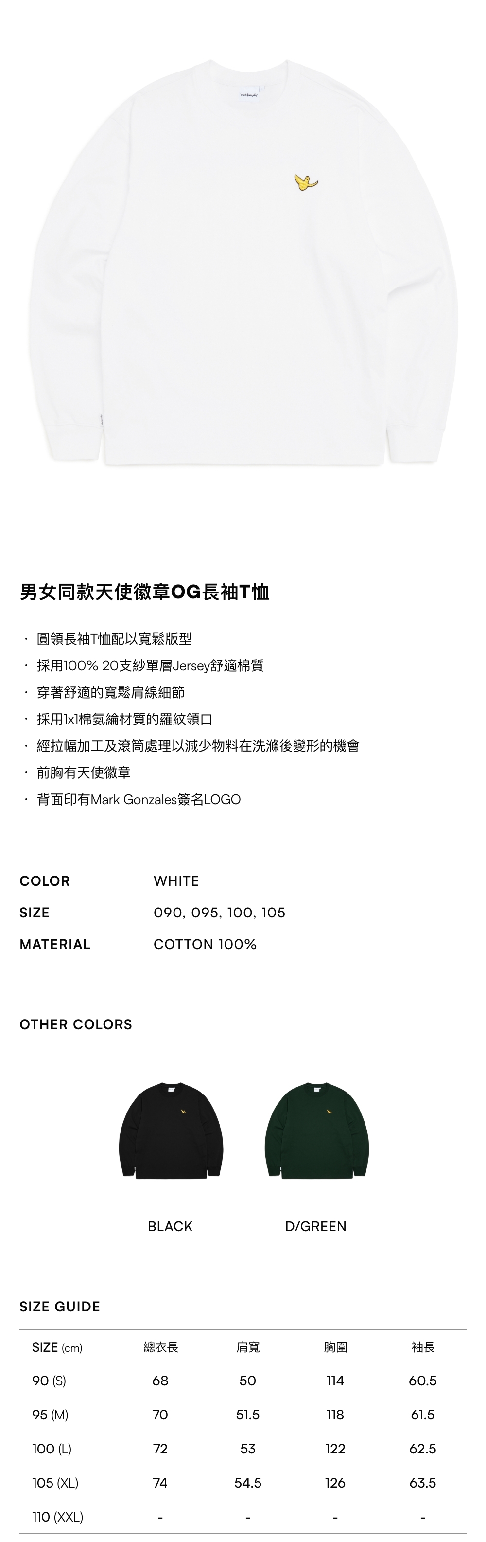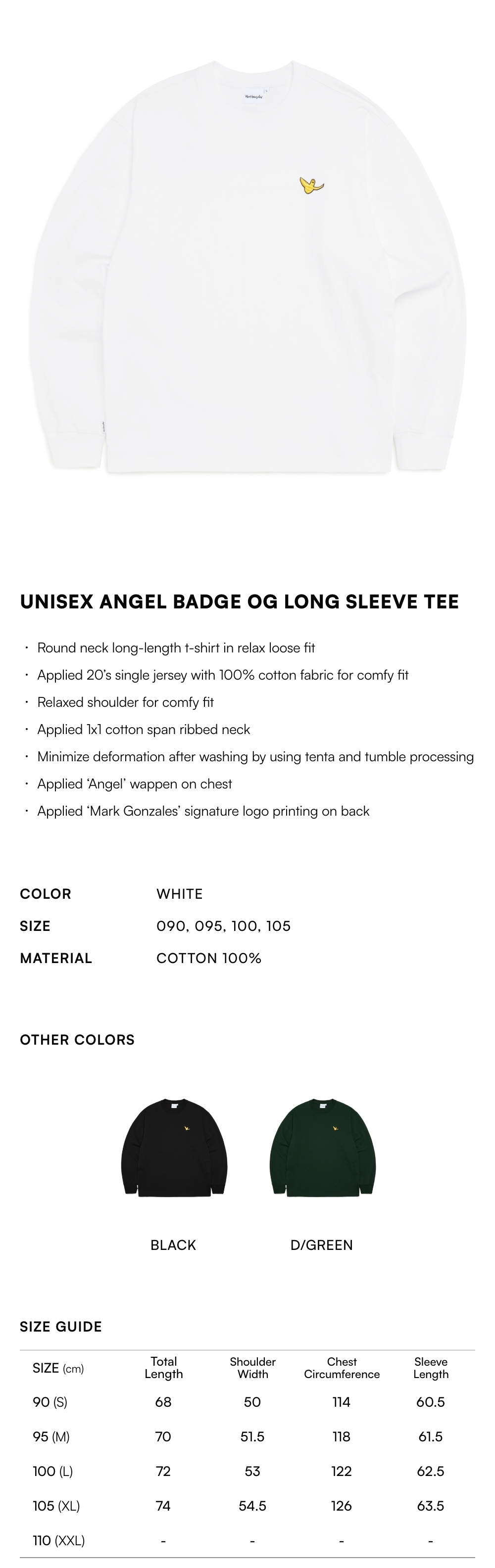 【10% OFF】Unisex Angel Badge OG Long Sleeve Tee - WHITE
