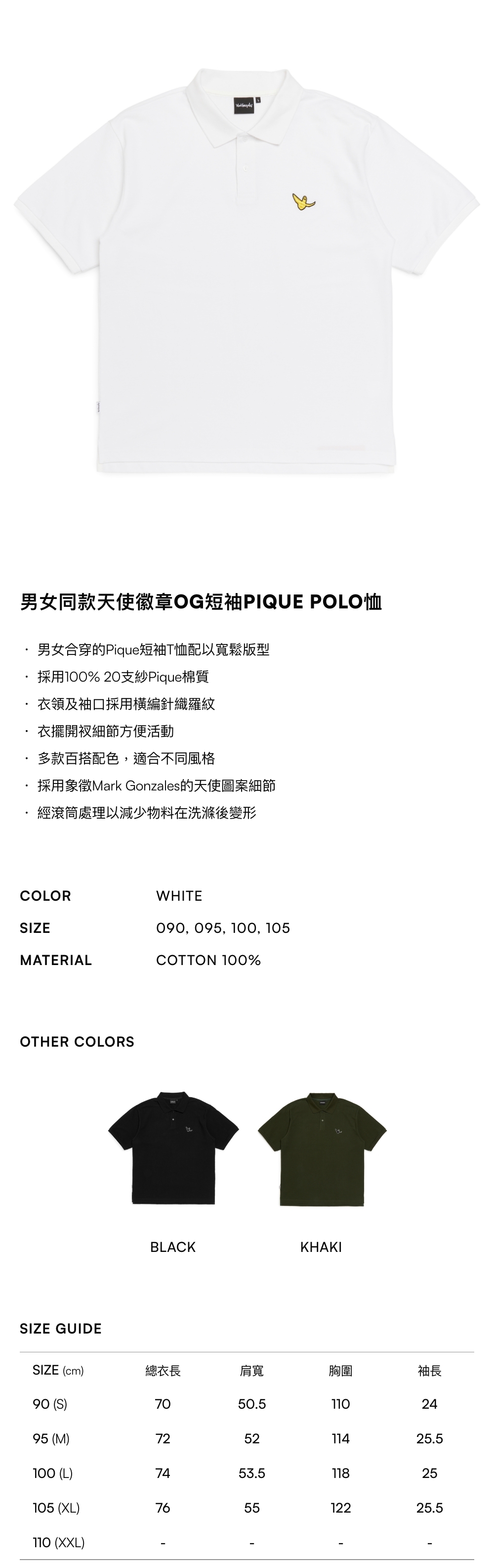 - 採用100% 20支紗Pique棉質