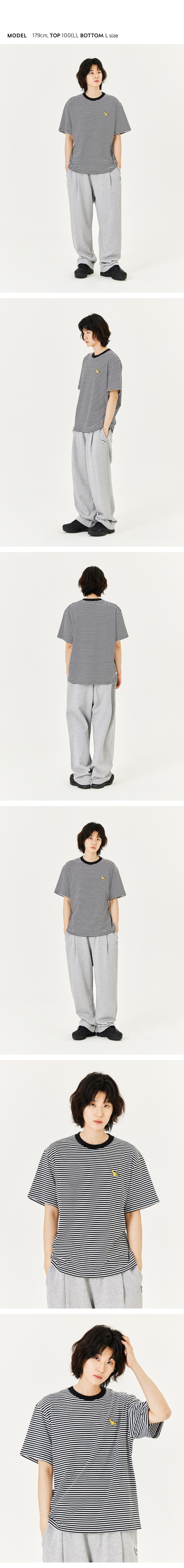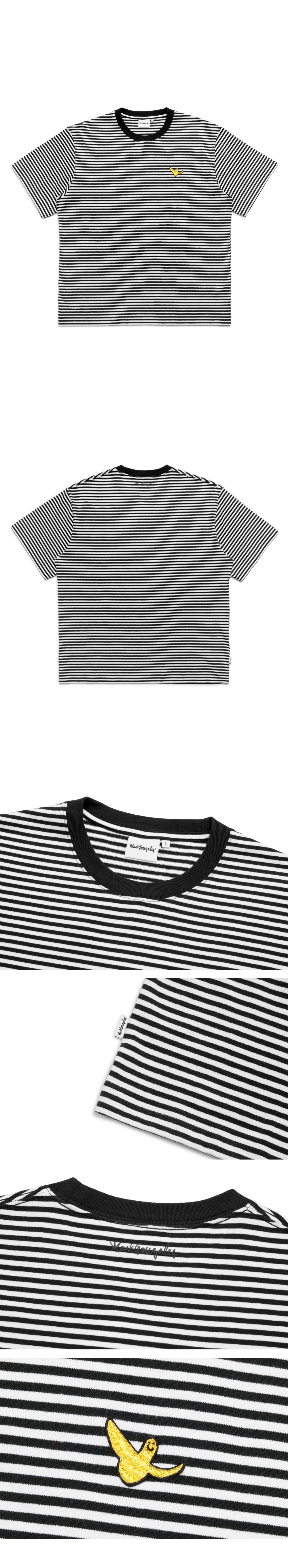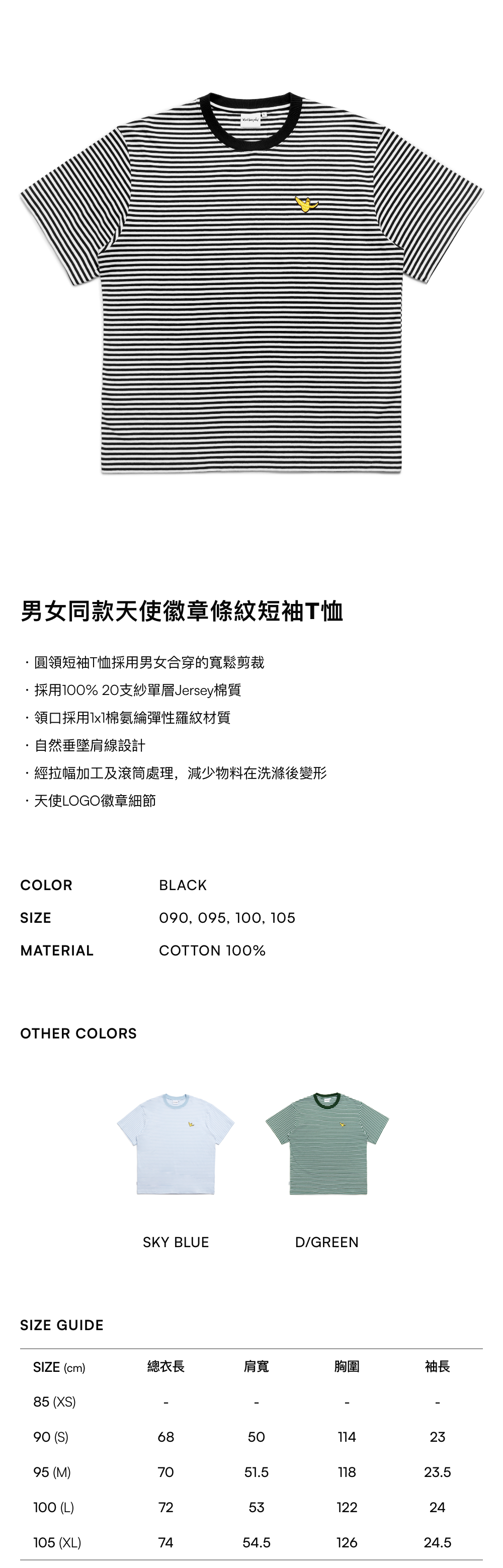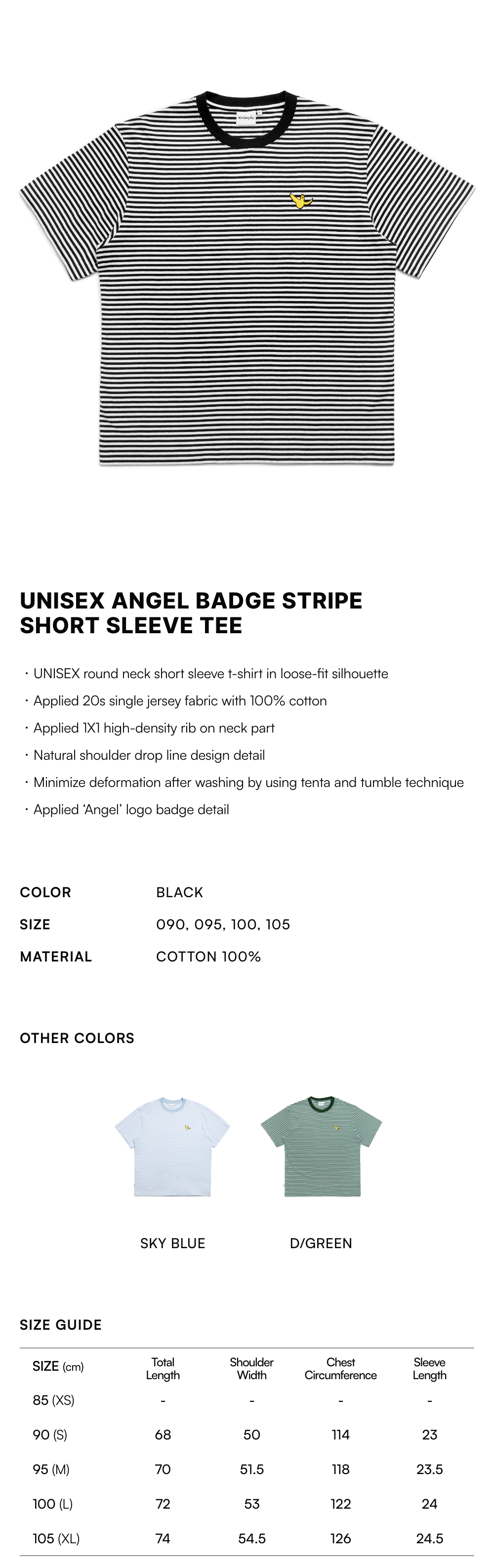 【10% OFF】Unisex Angel Badge Stripe Short Sleeve Tee - BLACK