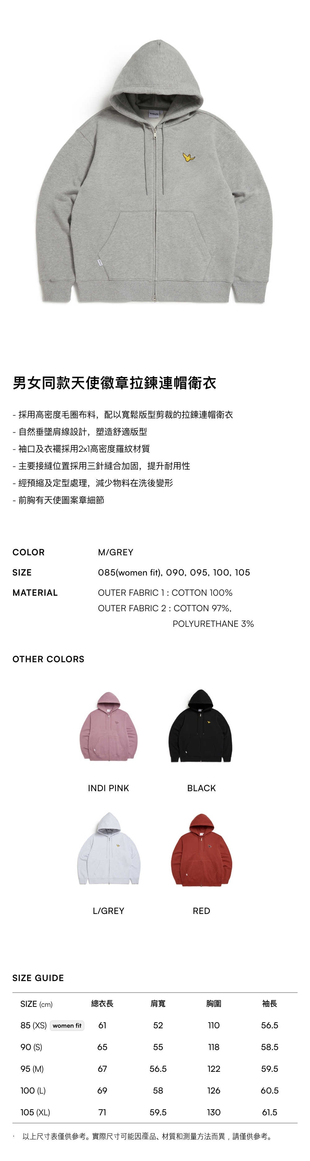 - 採用高密度毛圈布料,配以寬鬆版型剪裁的拉鍊連帽衛衣