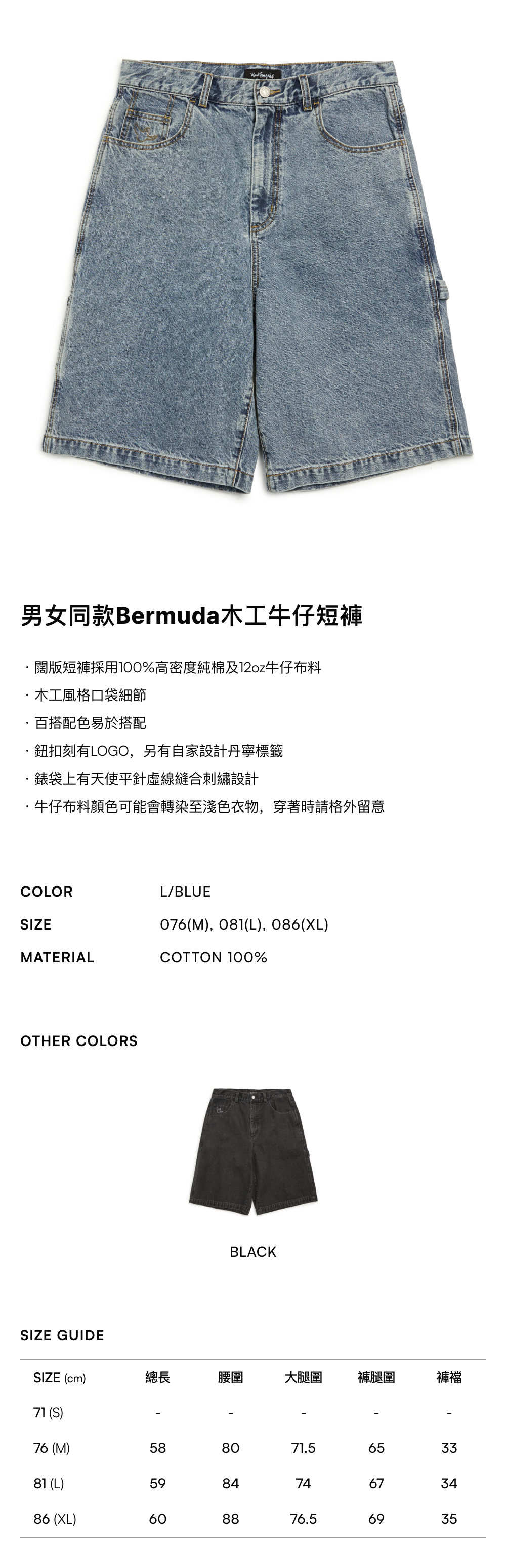 - 闊版短褲採用100%高密度純棉及12oz牛仔布料