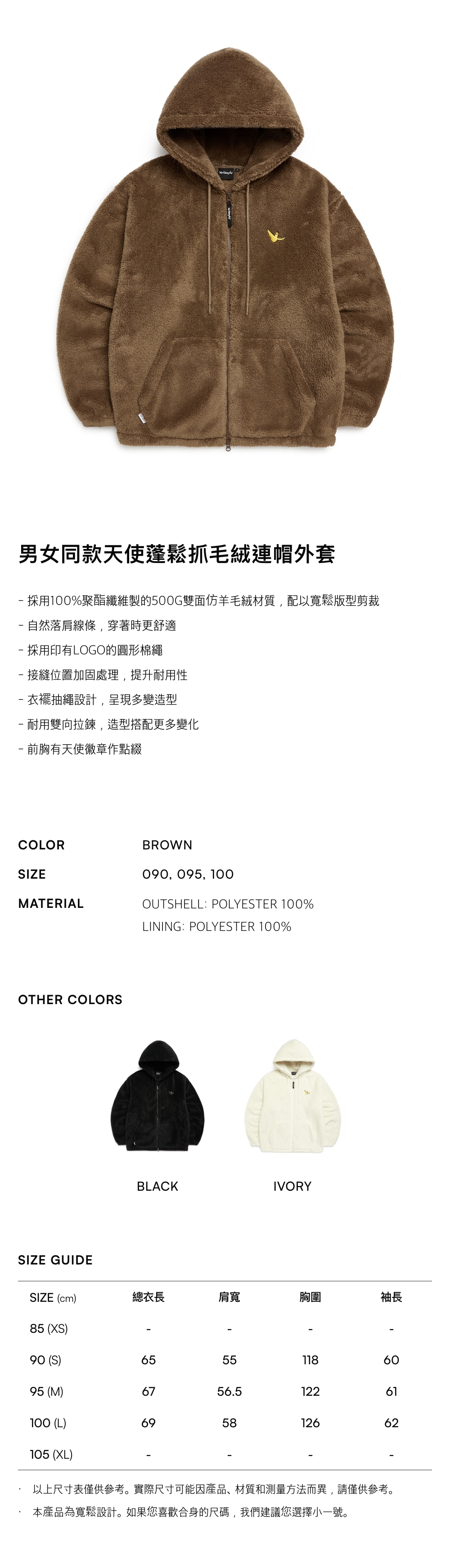 - 採用100%聚酯纖維製的500G雙面仿羊毛絨材質,配以寬鬆版型剪裁
