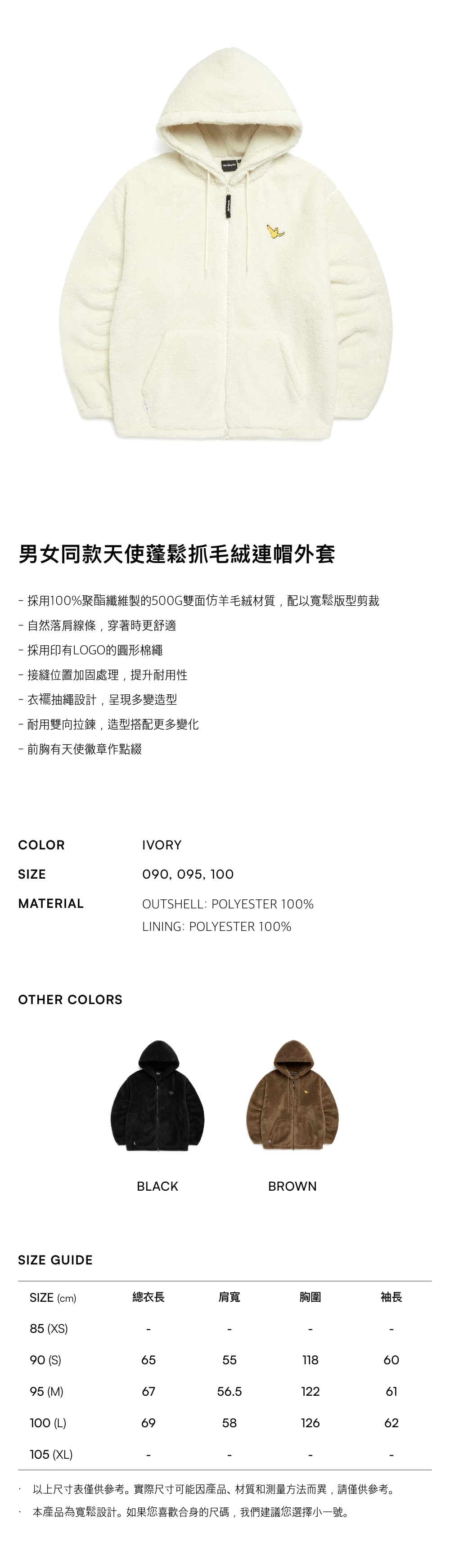 - Loose-fit shilhouette of POLY 100% 500G double-sided boa fleece fabric.