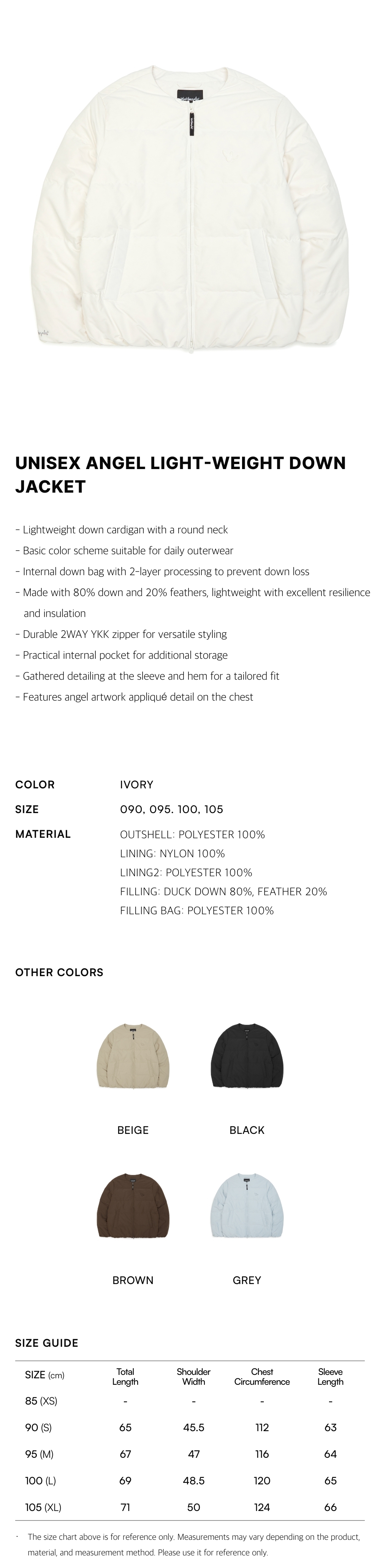 - Durable 2WAY YKK zipper for versatile styling