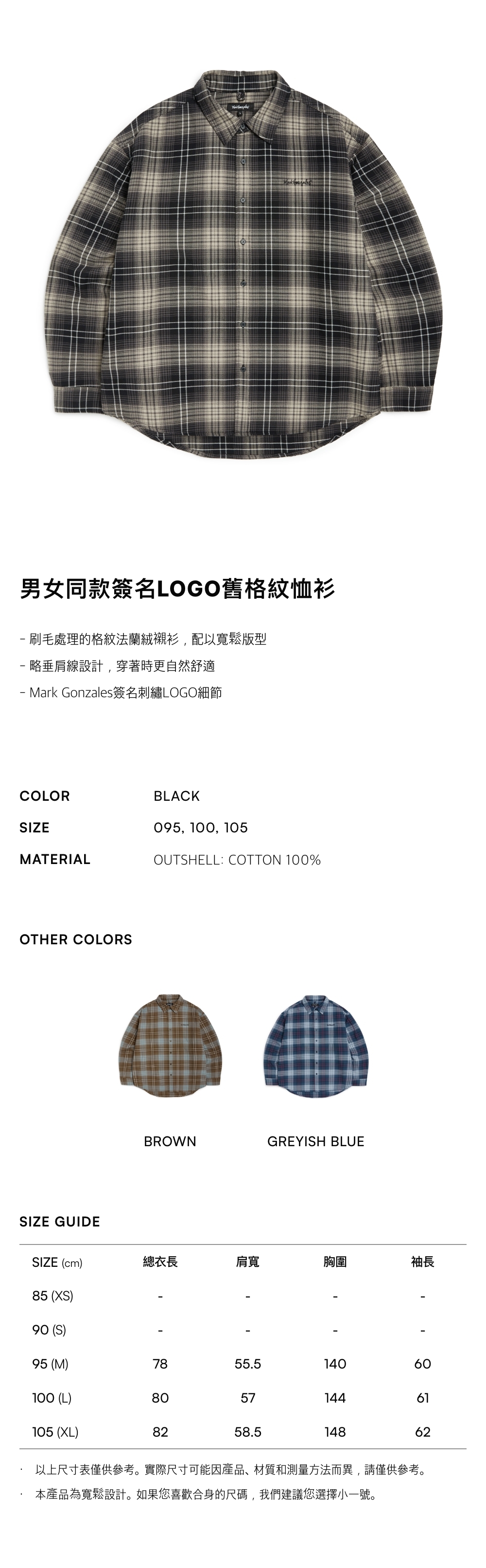 - 刷毛處理的格紋法蘭絨襯衫,配以寬鬆版型