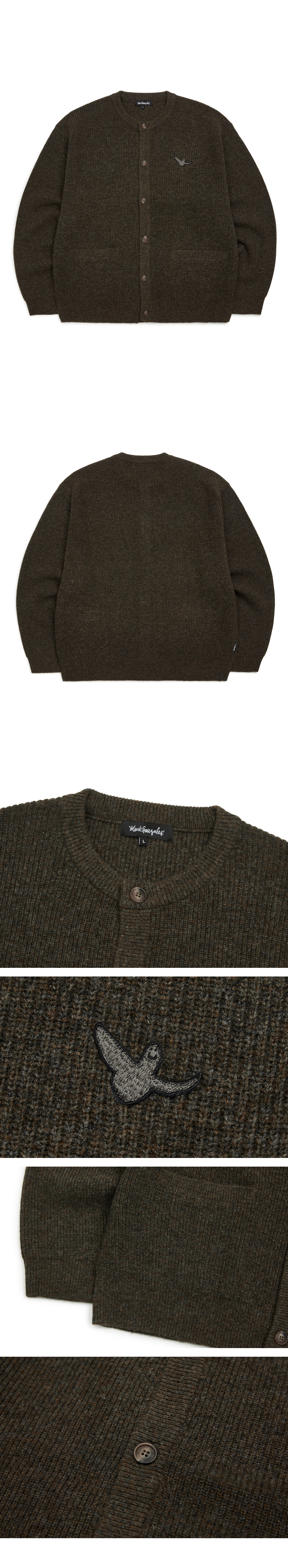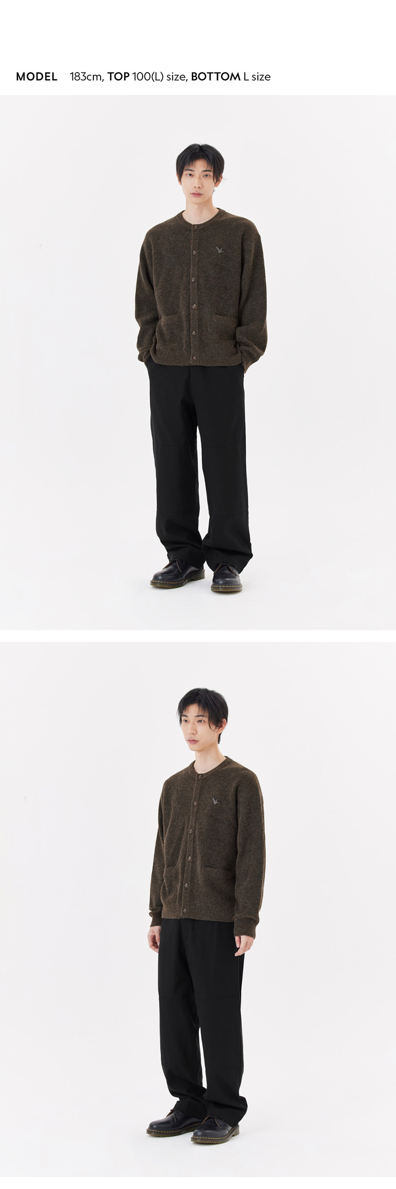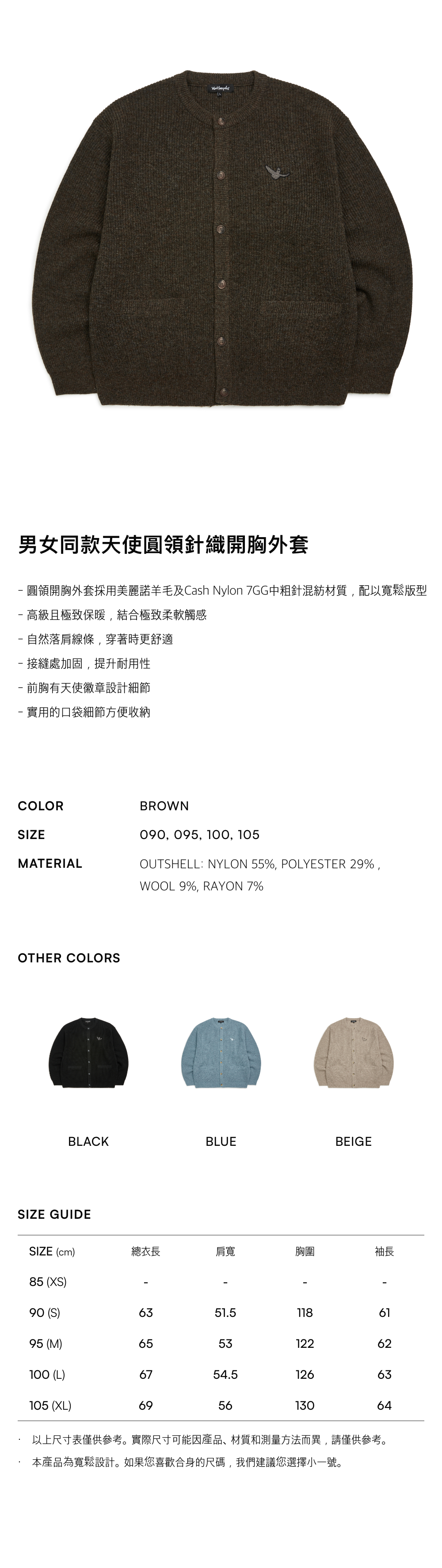 - 圓領開胸外套採用美麗諾羊毛及Cash Nylon 7GG中粗針混紡材質,配以寬鬆版型