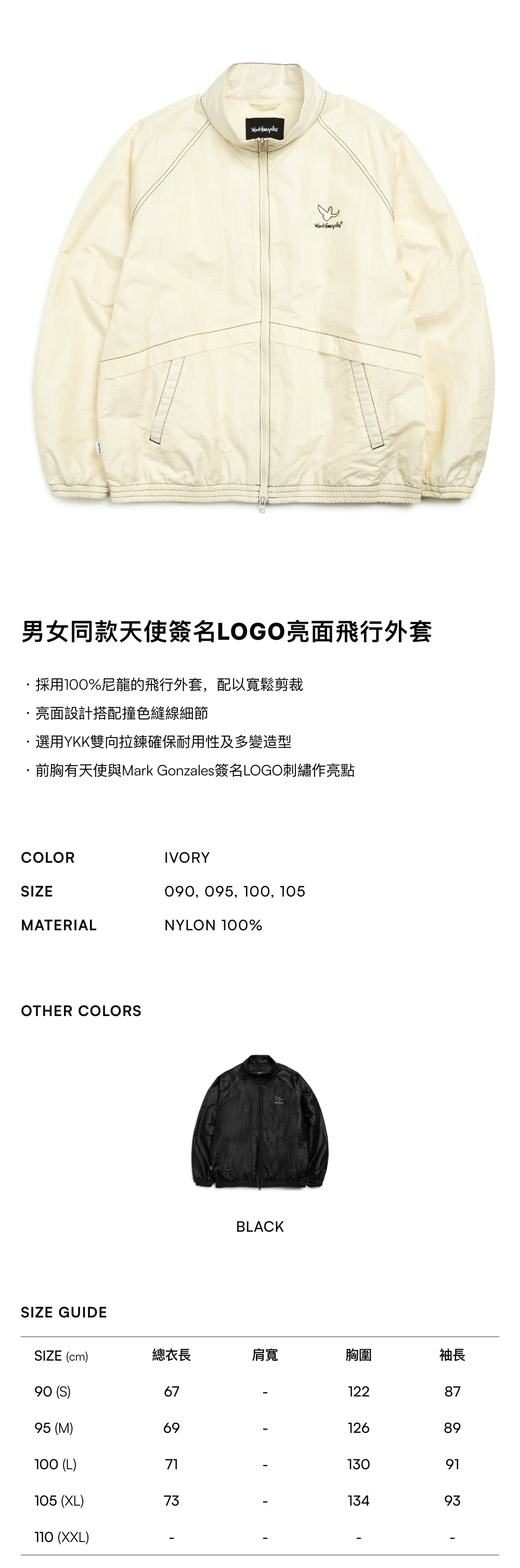 - 採用100%尼龍的飛行外套,配以寬鬆剪裁