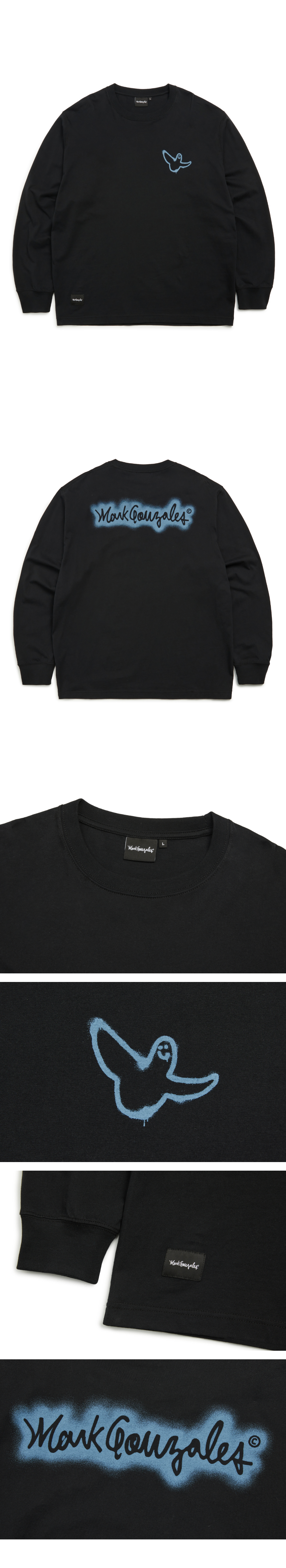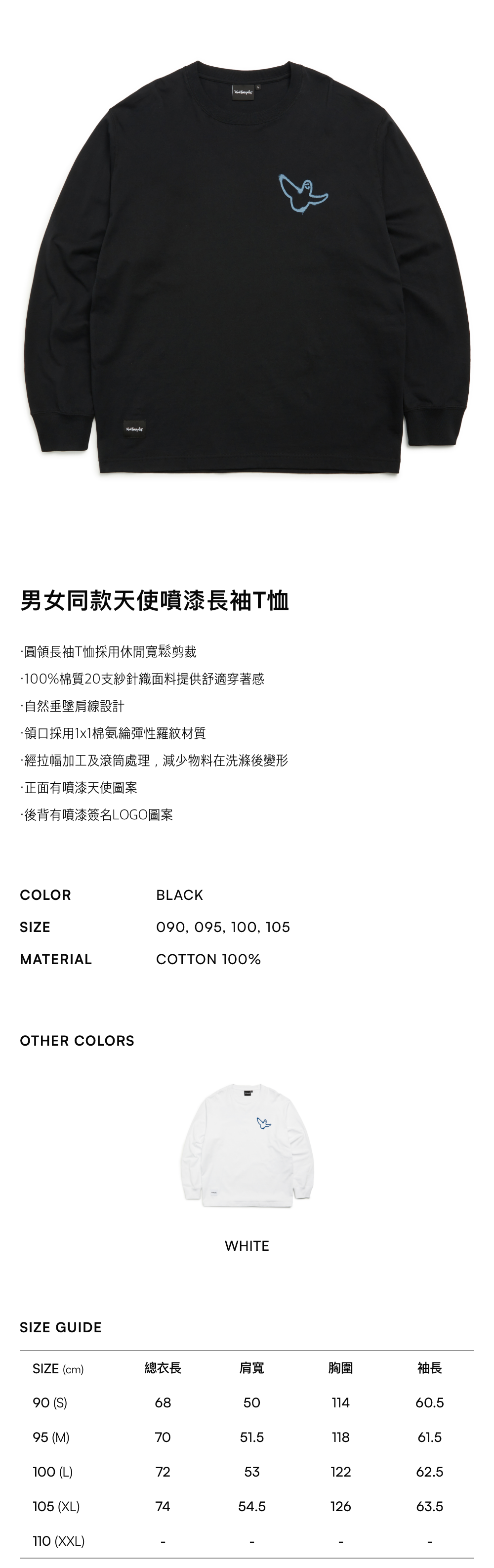 - 圓領長袖T恤採用休閒寬鬆剪裁