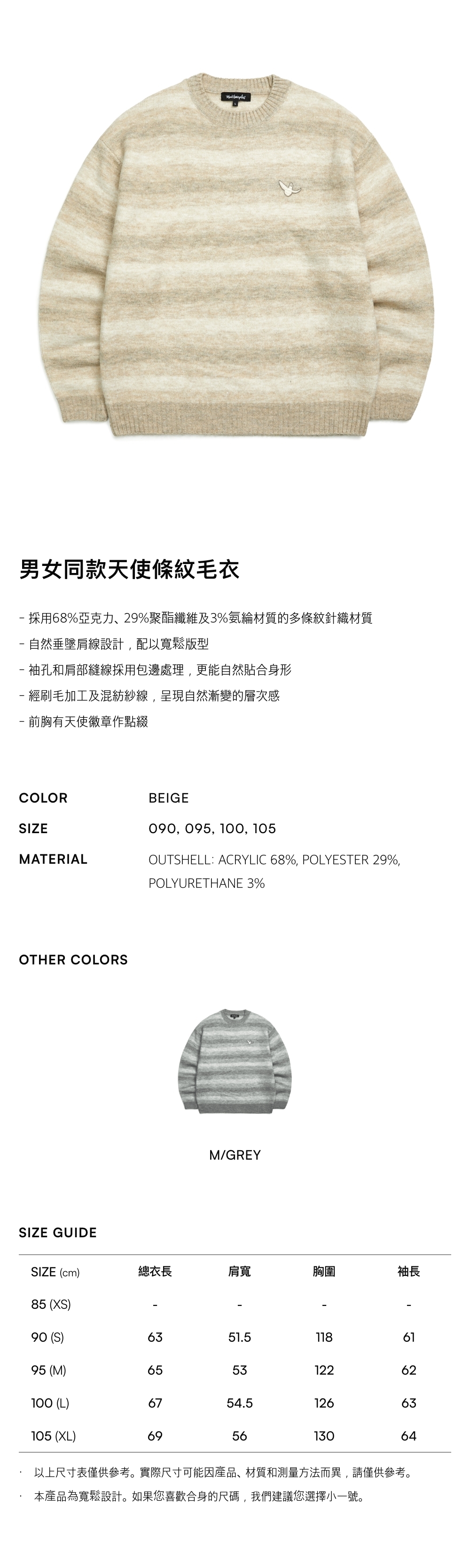 - 採用68%亞克力、29%聚酯纖維及3%氨綸材質的多條紋針織材質