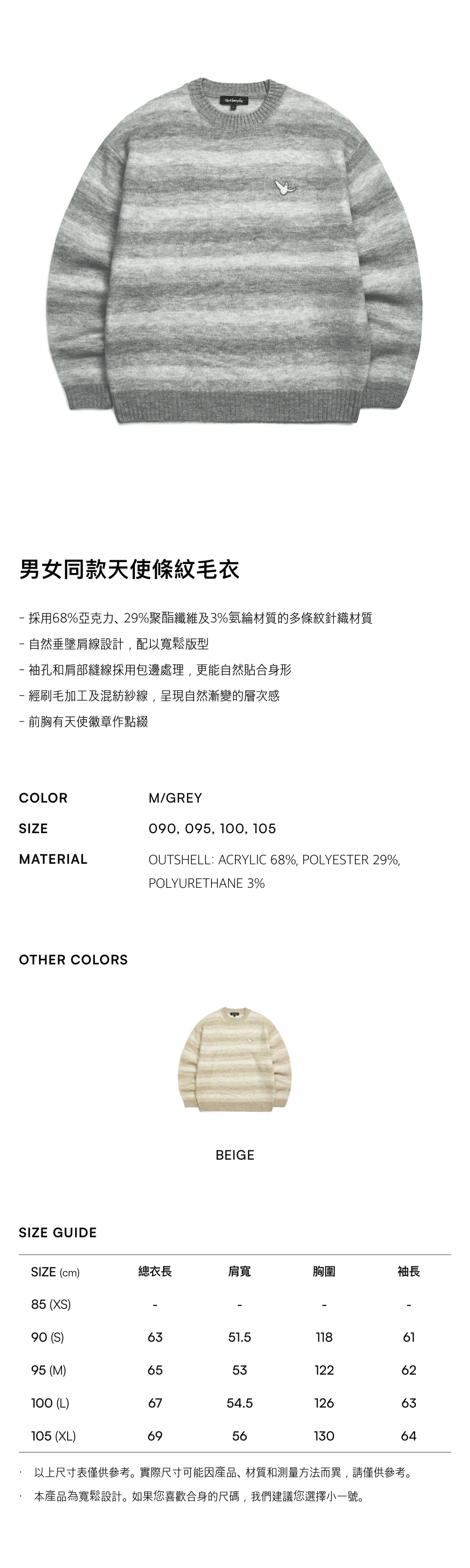- 採用68%亞克力、29%聚酯纖維及3%氨綸材質的多條紋針織材質