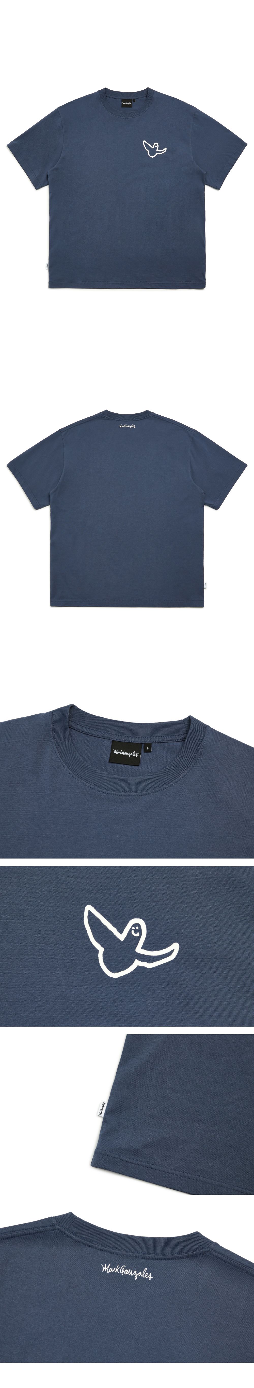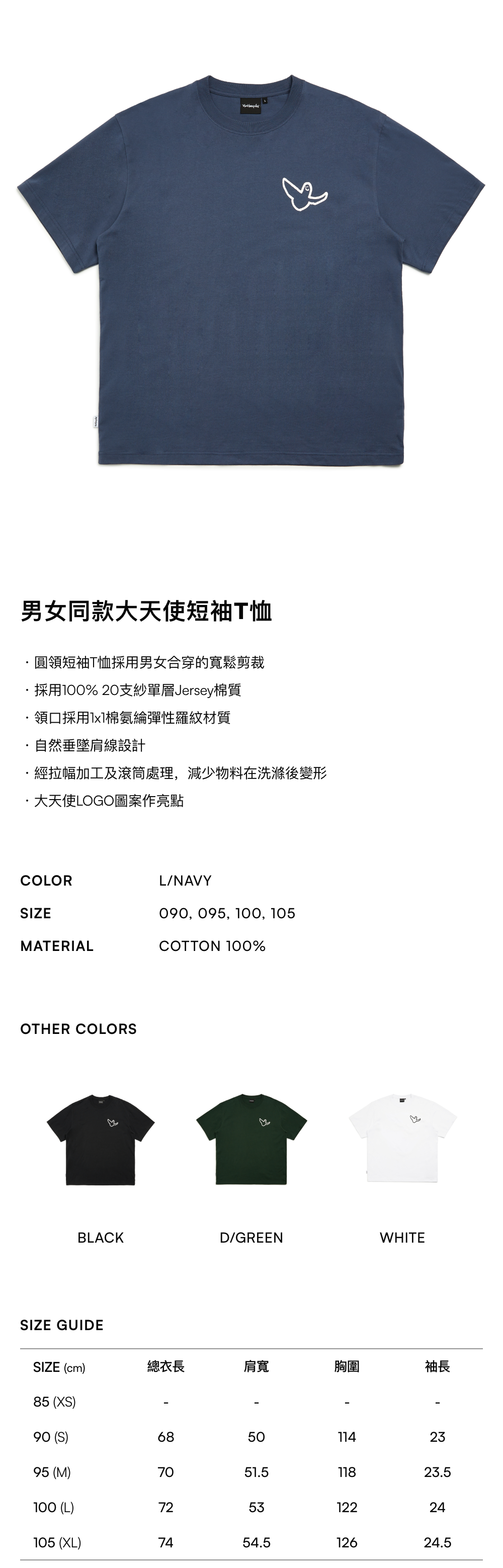- 圓領短袖T恤採用男女合穿的寬鬆剪裁