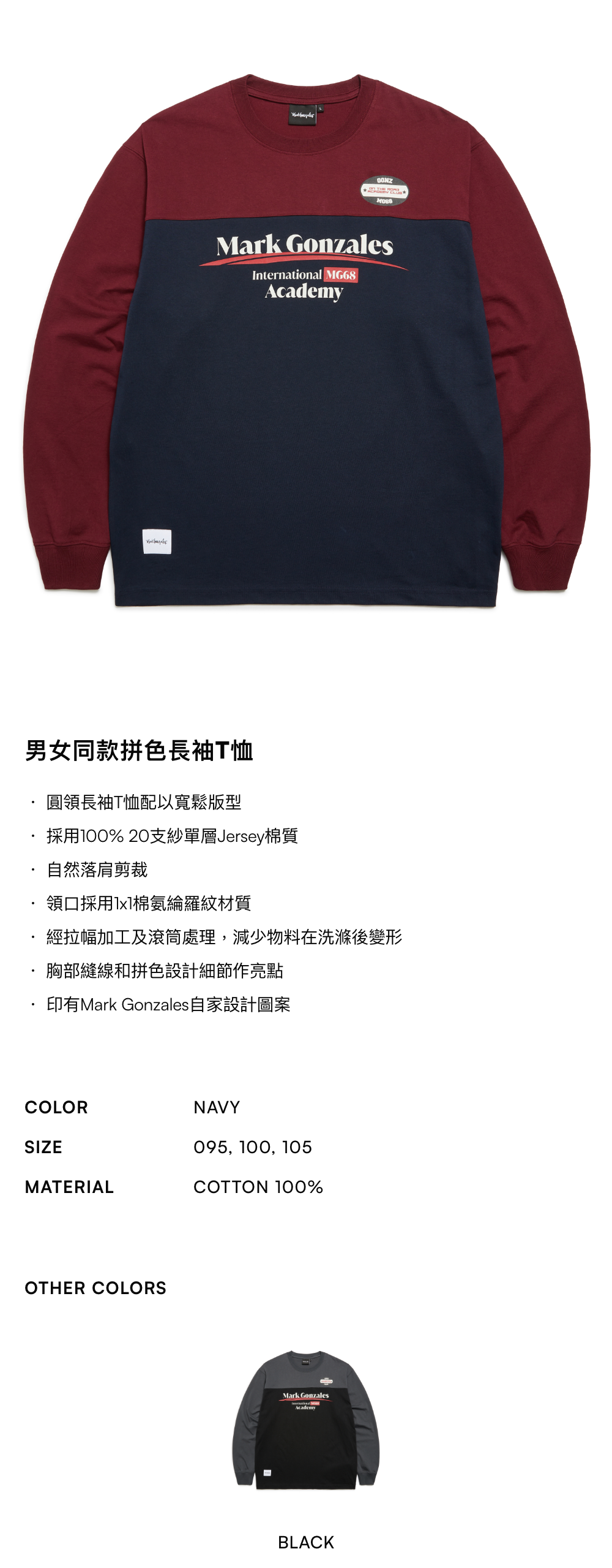 【官網88折】男女同款拼色長袖T恤